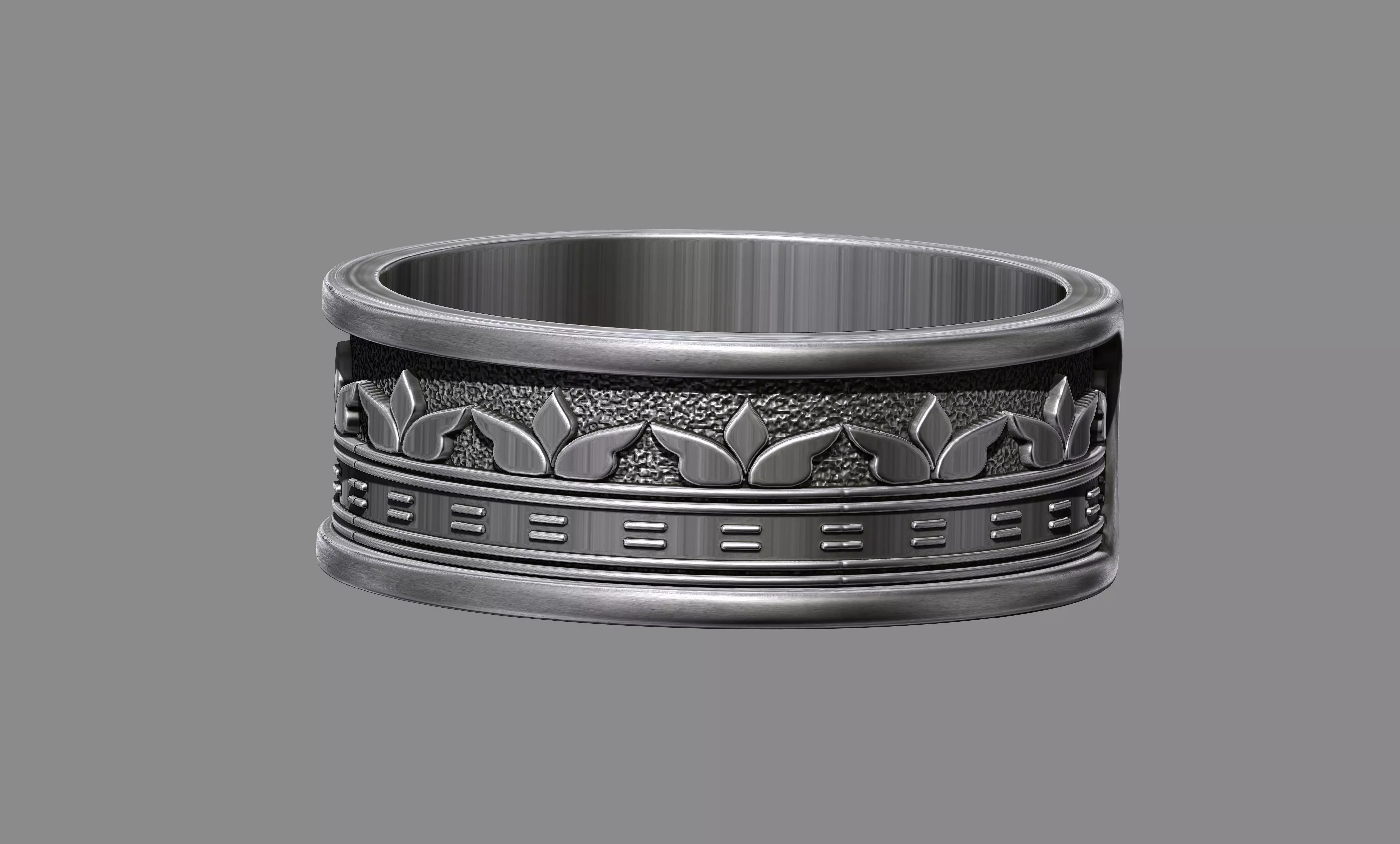 An elegant ring featuring a richly detailed Victorian-inspired ornamental pattern wrapped around the band. Intricate scrollwork and classic motifs evoke a sense of heritage, romance, and timeless craftsmanship. Designed for high-quality 3D printing and suitable for metal casting, this ring is ideal for wedding bands, statement jewellery, or vintage-style custom jewellery projects.