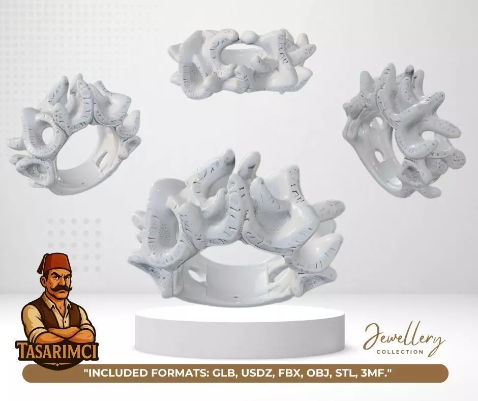 This magnificent Ottoman Sultan Ring blends classical Turkish-Islamic art with modern 3D jewelry design. A central gemstone mount is surrounded by intricate Ottoman motifs and ornamental engravings, bringing the grandeur of the past into today’s digital craftsmanship. The band is adorned with symmetrical details, making the piece both historical and visually captivating.