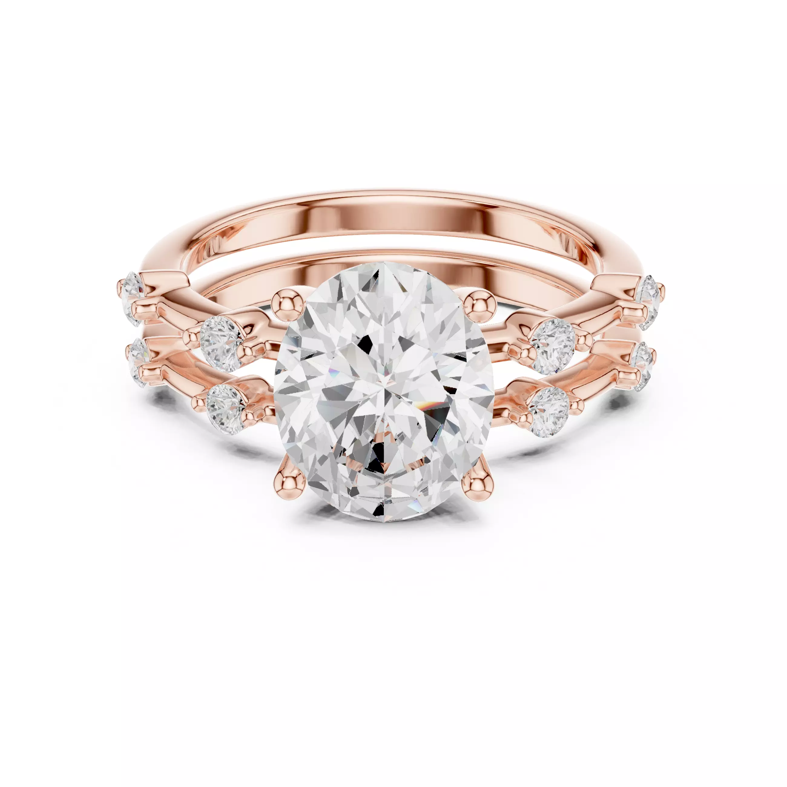 Oval and Round Cut Bridal Wedding Ring Set 3DM STL Video 3D print model