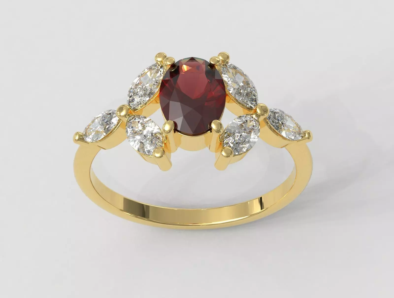 Diamond or Gemstone sizes and quantity:1 Oval Gemstone (7mm x 5mm) and 6 Marquise (5mm x 2,50mm).