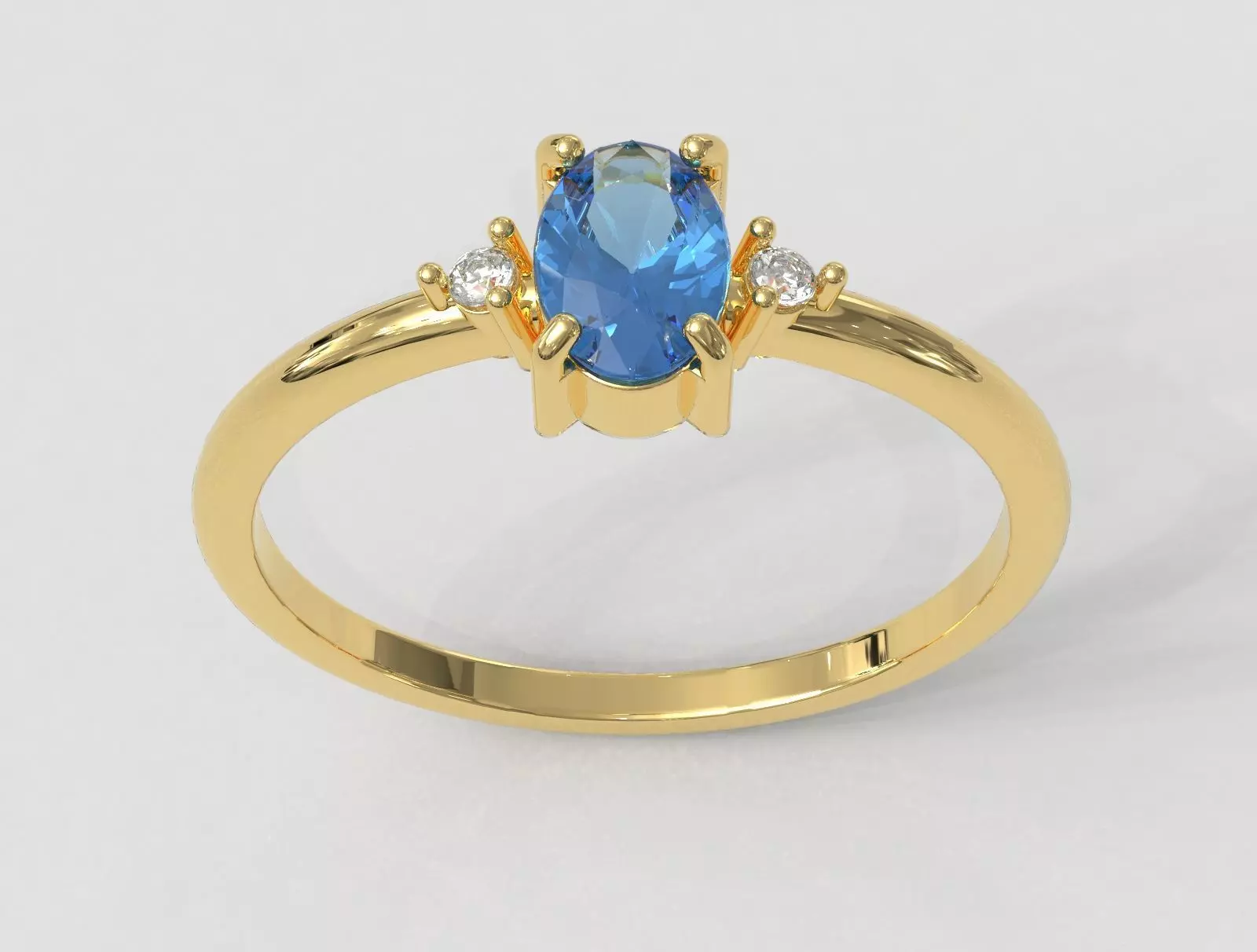 A Classic Oval Gemstone Ring with a central stone and 2 diamonds. You can cast it in gold or silver.