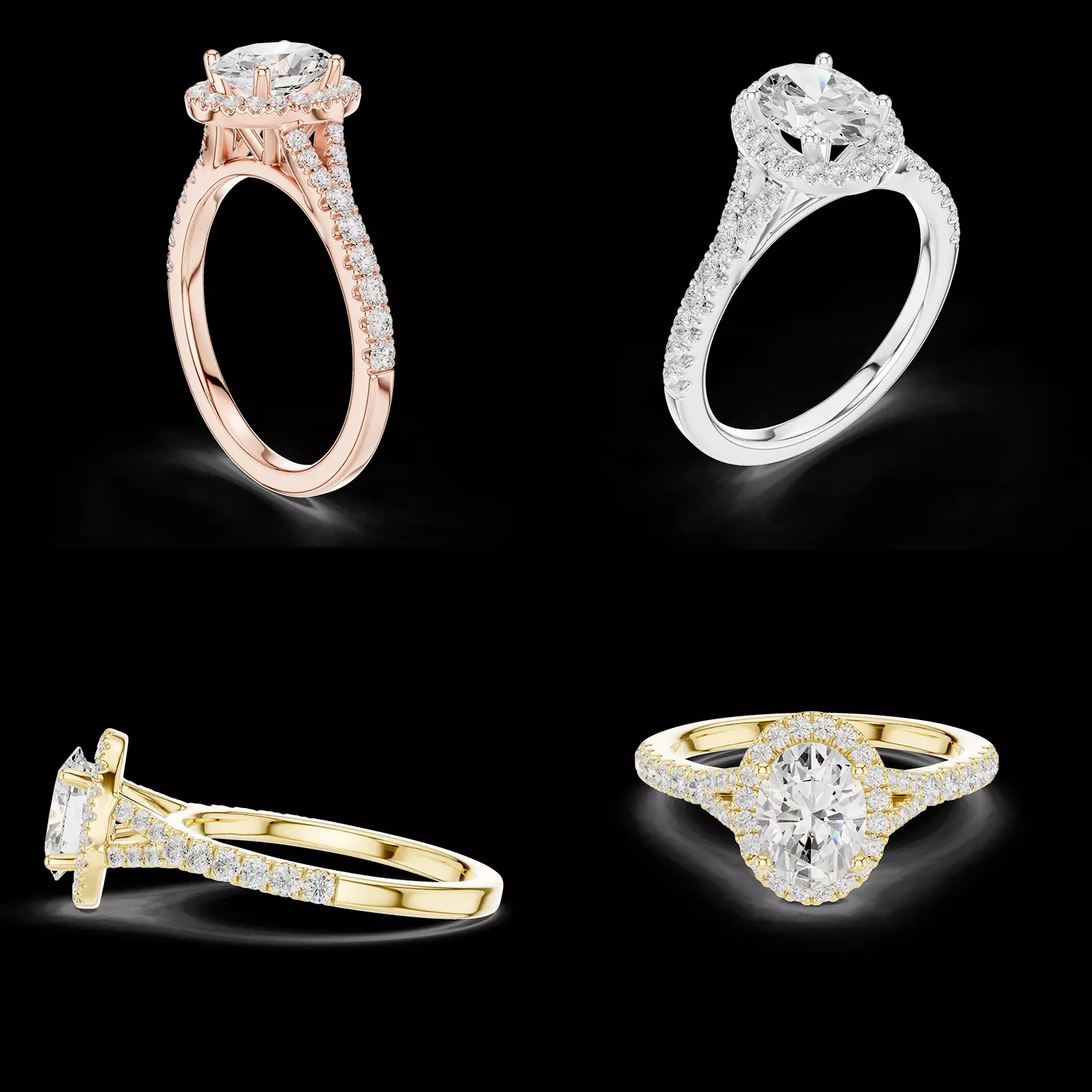 This Oval Cut Halo Diamond Engagement Ring 3D CAD model is professionally crafted for high-end jewellery manufacturing and luxury bridal collections. The design features a brilliant oval center stone surrounded by a precisely structured halo of round diamonds, enhancing overall sparkle and finger coverage.