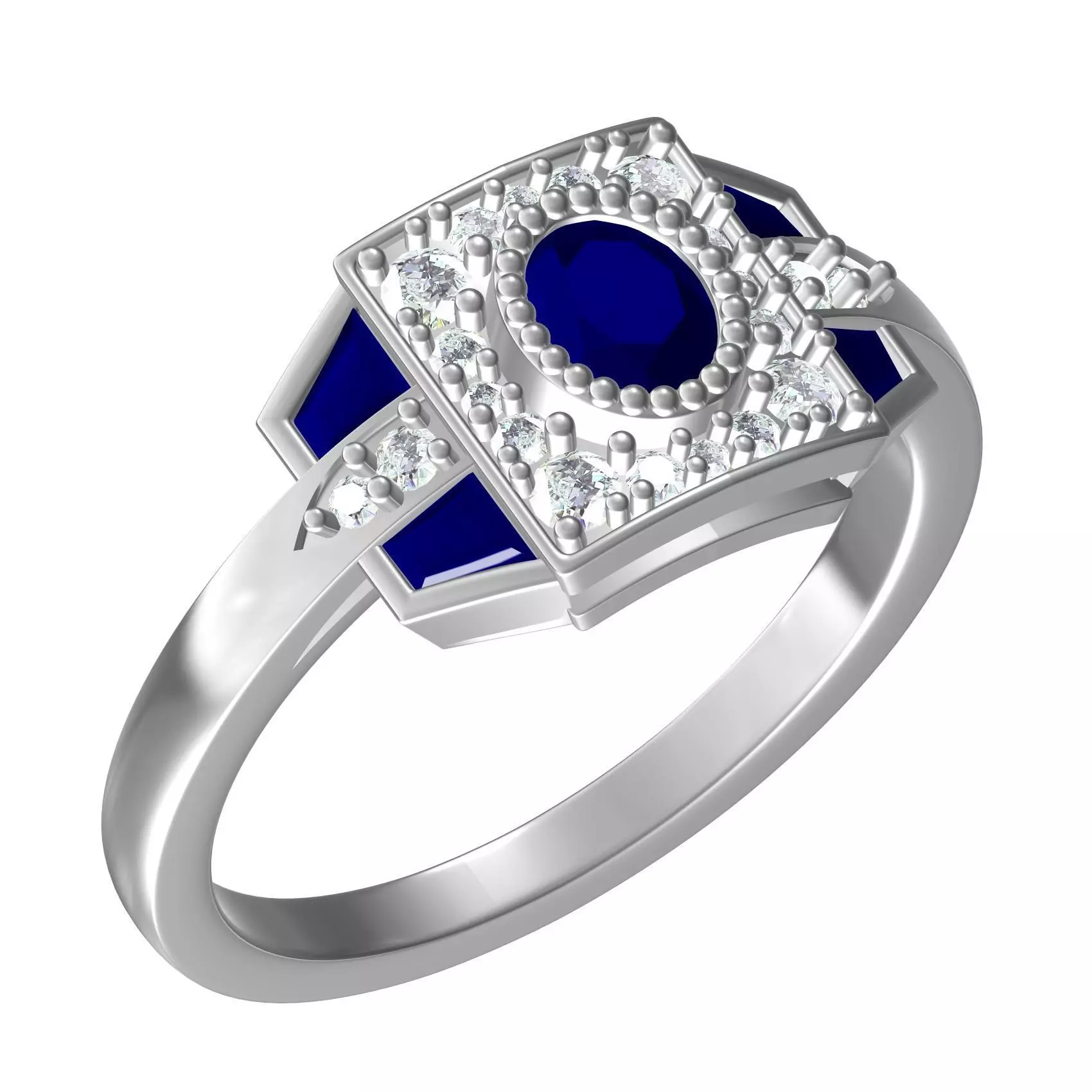 Oval Diamond Art Deco Style Engagement Ring
