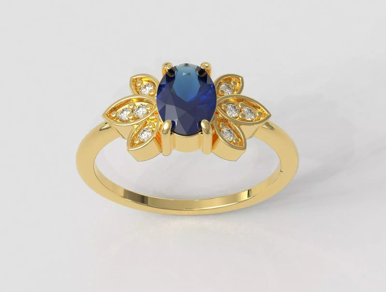 Gemstone and Diamond sizes and quantity:1 Oval Gemstone (7mm x 5mm) and 8 diamonds (1.30mm).