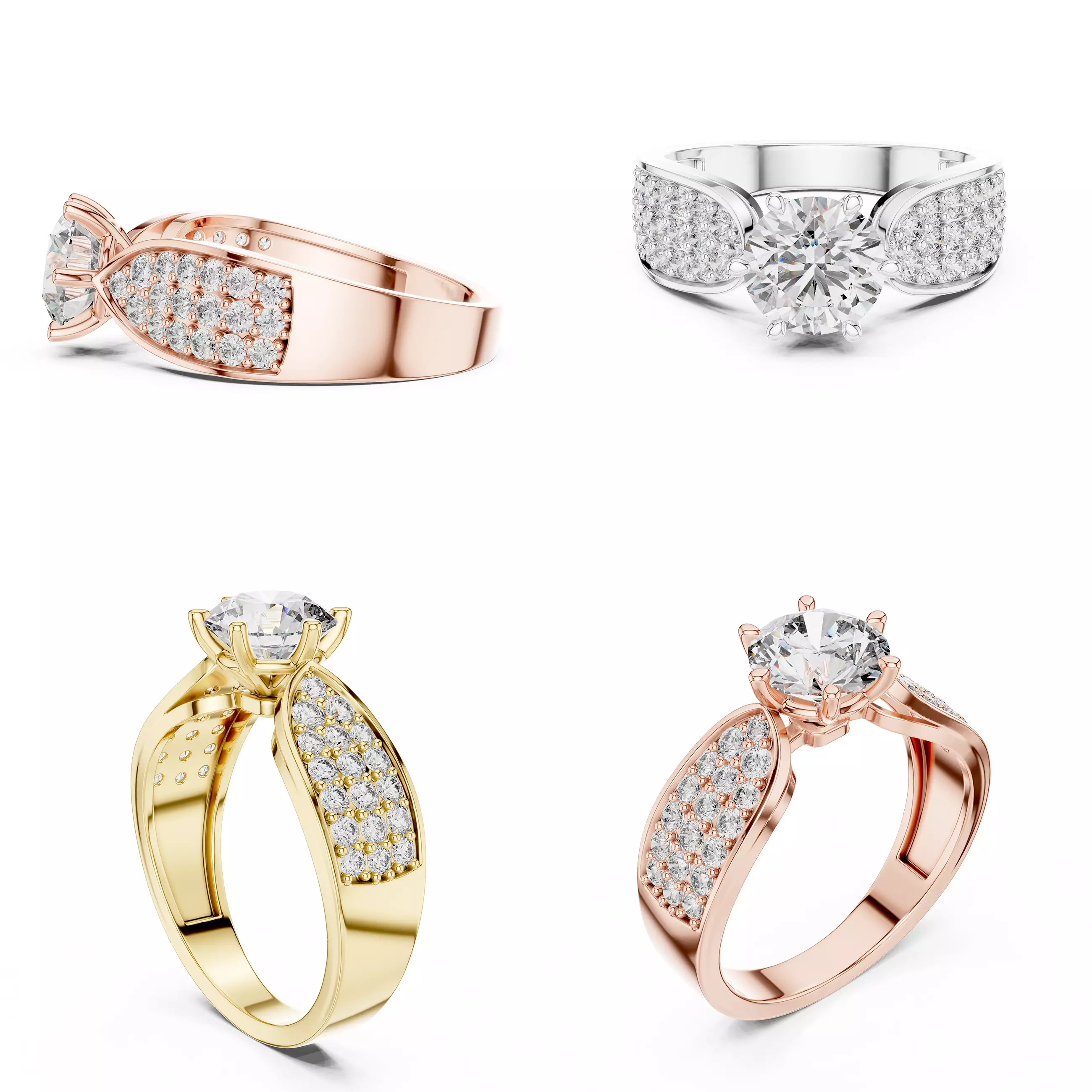 This premium ladies ring CAD model features a brilliant round-cut center diamond complemented by a luxurious pavé diamond shank that adds depth, sparkle, and a bold modern appeal. The smooth, flowing band and secure prong setting create a perfect balance between elegance and durability.