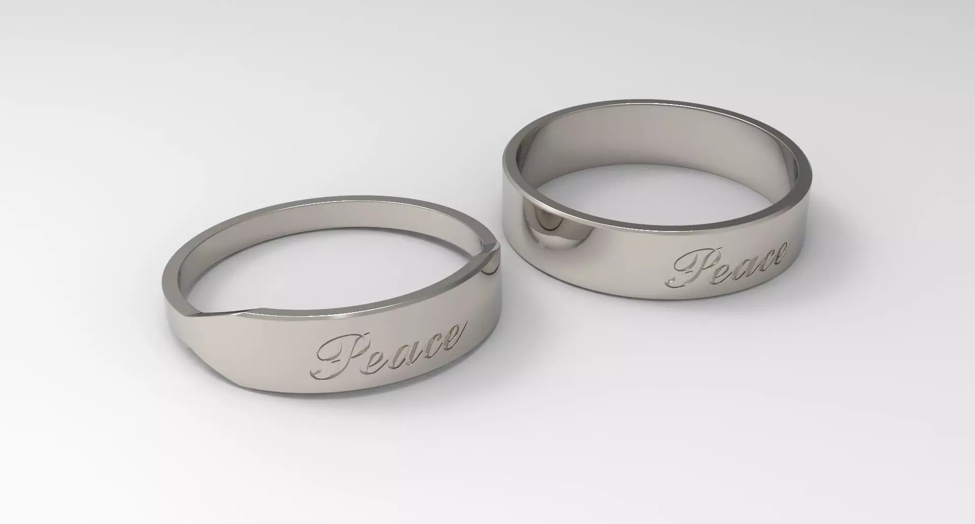 Male Version:-Peace Ring with Platinum Polished material, modeled in 3ds Max and Rendered in Keyshot 9.3 pro.Platinum Polished material used.