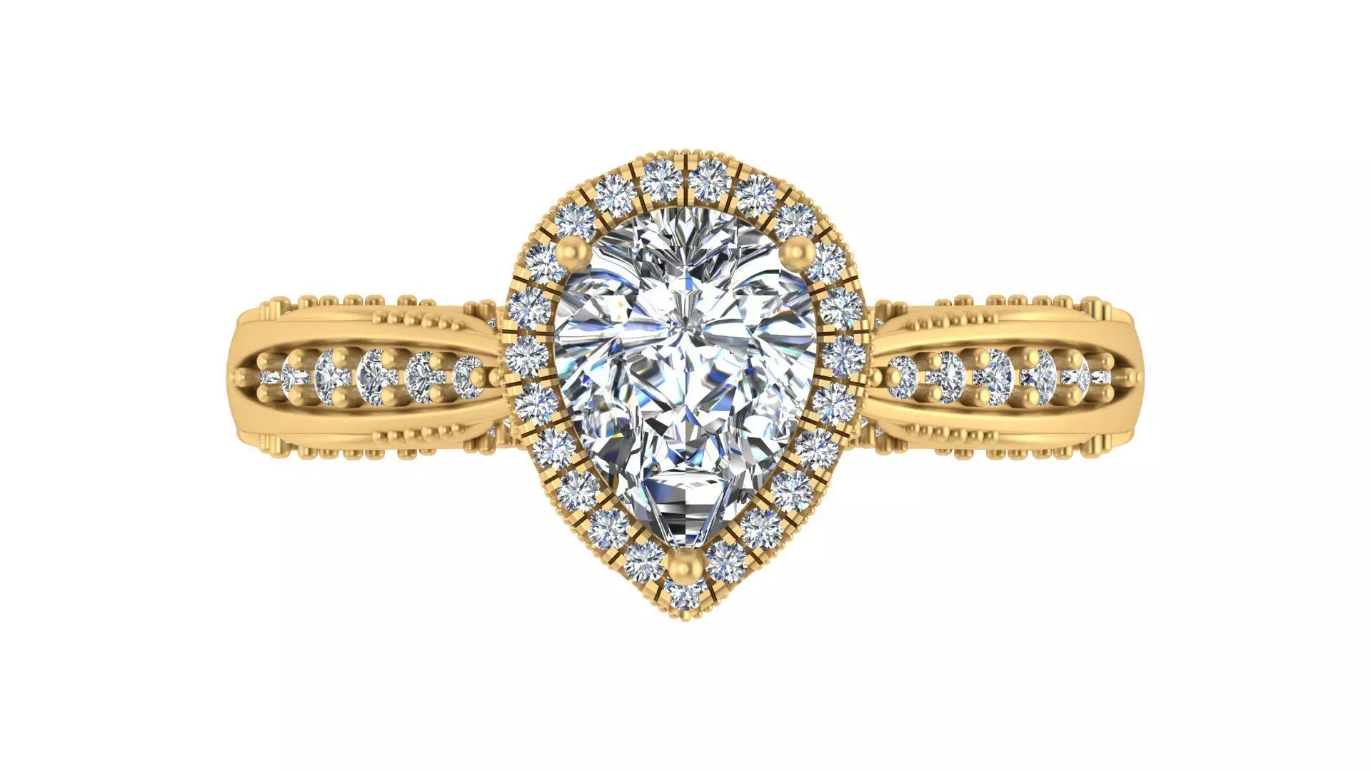 Design Features:Pear-Cut Center Stone: The teardrop shape offers a timeless and elegant aesthetic, symbolizing love and emotion.