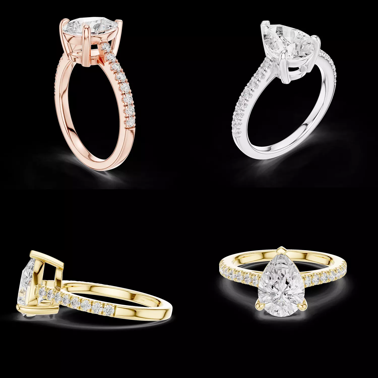 • Production-ready jewellery CAD model• Accurate pear-cut center stone seat• Reinforced tip protection setting• Pavé-ready shoulder detailing• Optimized shank thickness for casting strength• Clean and smooth surface topology• Resizable ring size• Suitable for natural or lab-grown diamonds• Ready for CAM and manufacturing workflow