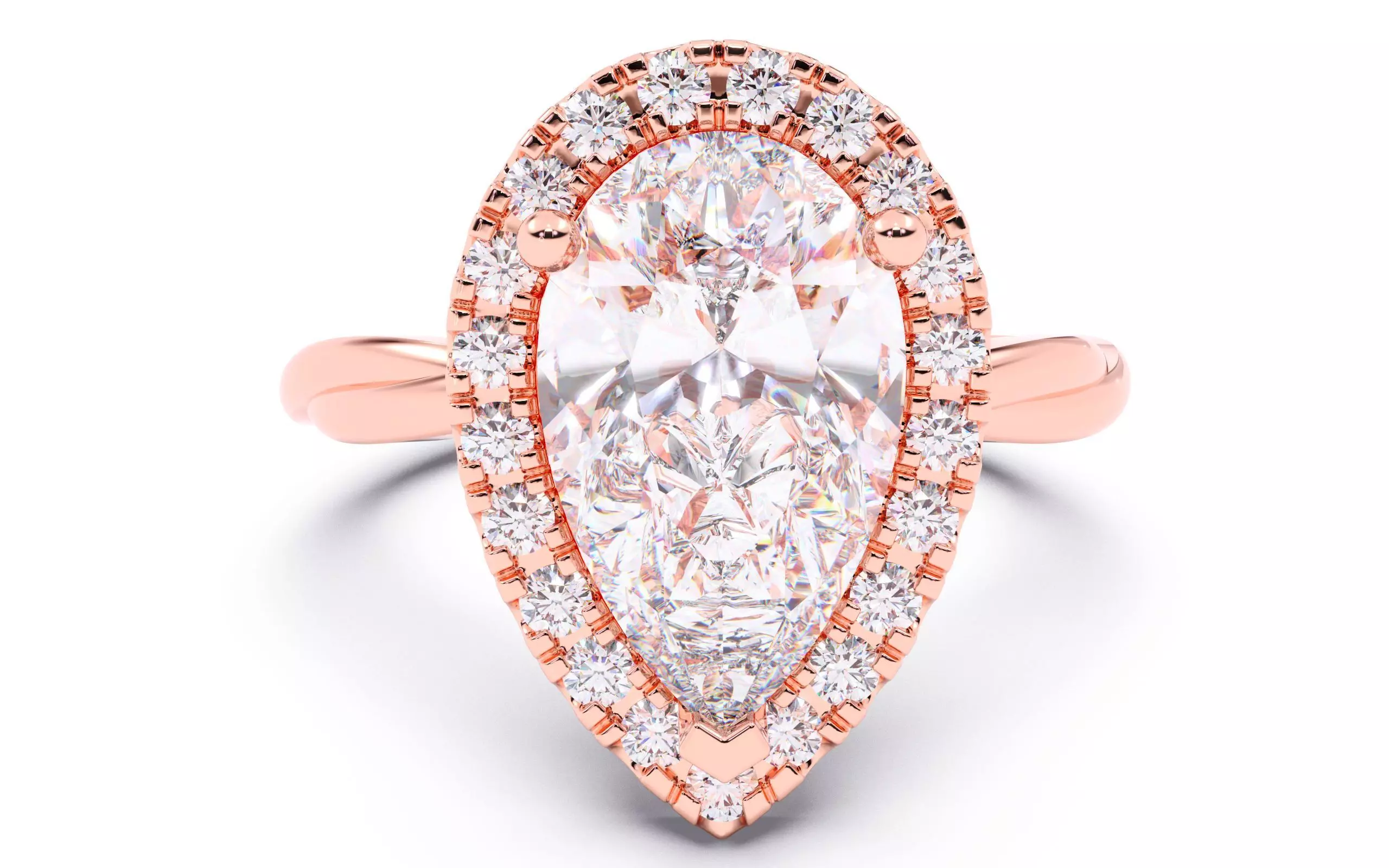 Pear Diamond Halo Setting Solitaire Ring 3D print model