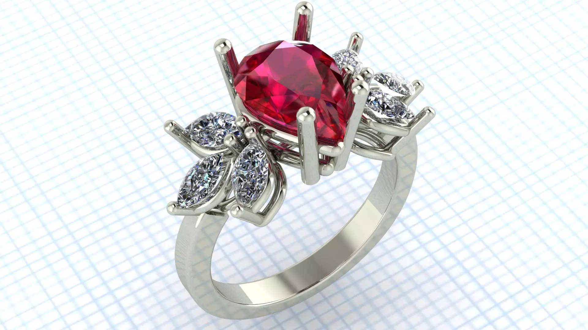 pear shaped engagement ring 3D print model