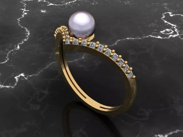 Ging size: 56 Fr sizeGold Weights in 18KY: 2.11 gr Gems: 19 QTY or 0.20 ctPearl Size: 5mm