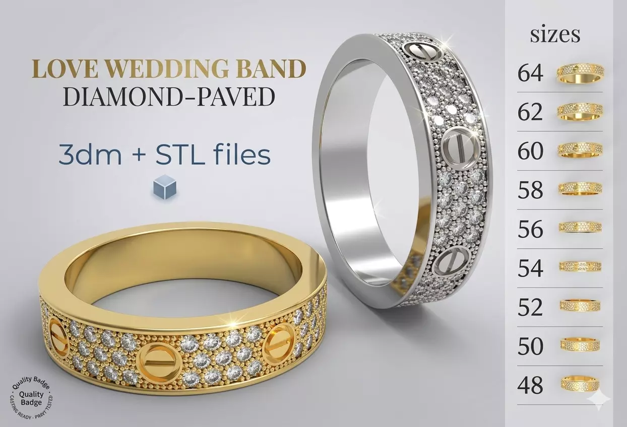 Elevate your jewelry production with this meticulously crafted 3D model of the iconic LOVE wedding band. This pack is specifically engineered for professional jewelers and 3D printing enthusiasts who demand precision and casting-ready quality.