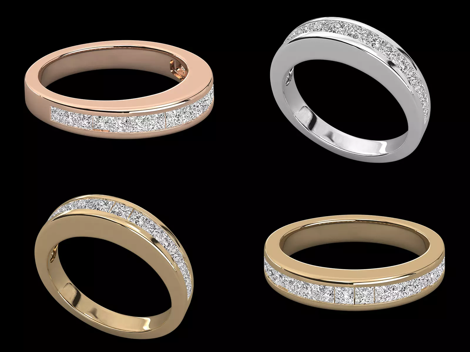 Important PointsProduction-ready CAD modelsSecure channel setting for stone protectionAccurate princess cut stone alignmentSmooth surface flow for efficient polishingBalanced band proportions for durabilityEditable files suitable for customization