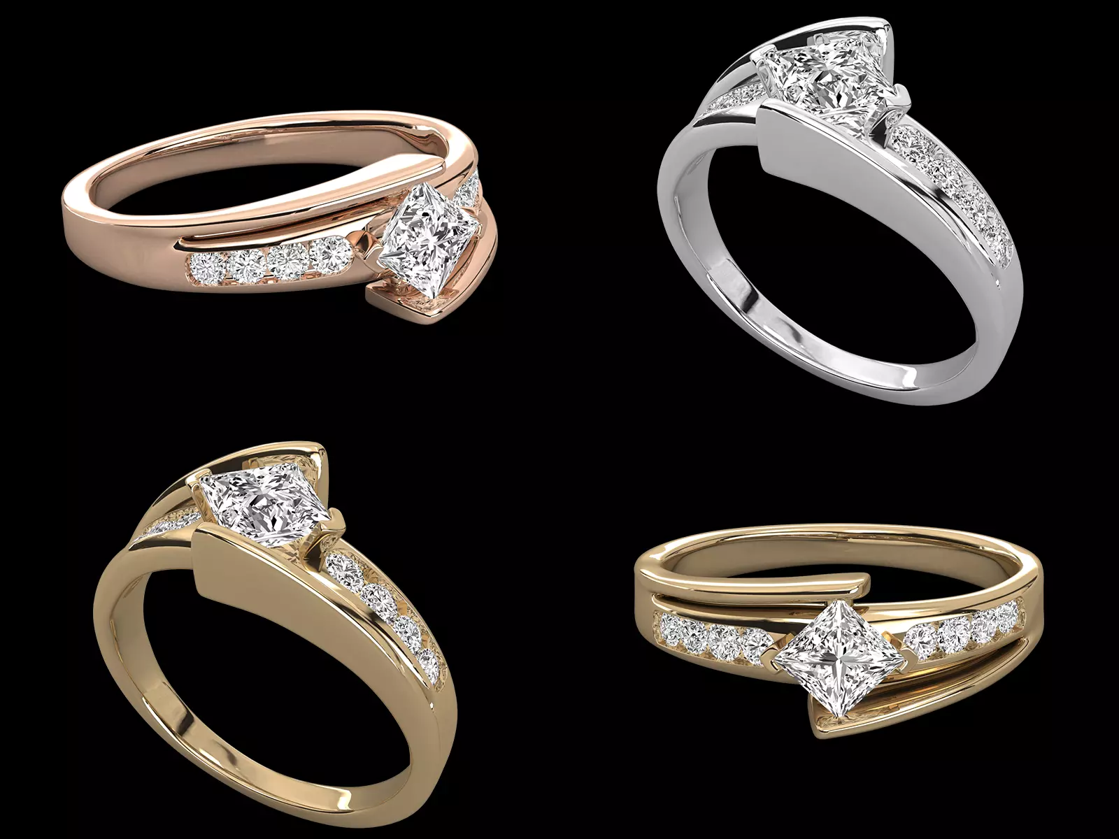 Professional jewellery CAD modelProduction-ready and casting-friendly designAccurate princess cut setting and prong geometrySmooth surface flow for premium polishingComfortable band proportions for daily wearEditable files included for customization