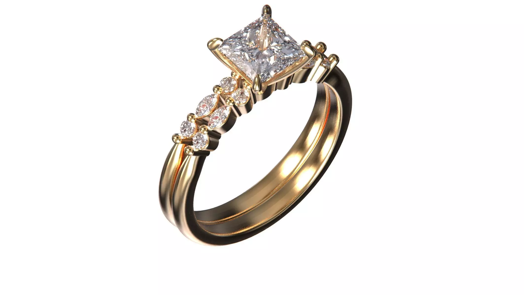 Center Stone: 1 Princess-Cut Diamond – 6.37 x 6.36 mm (1.46 ct)