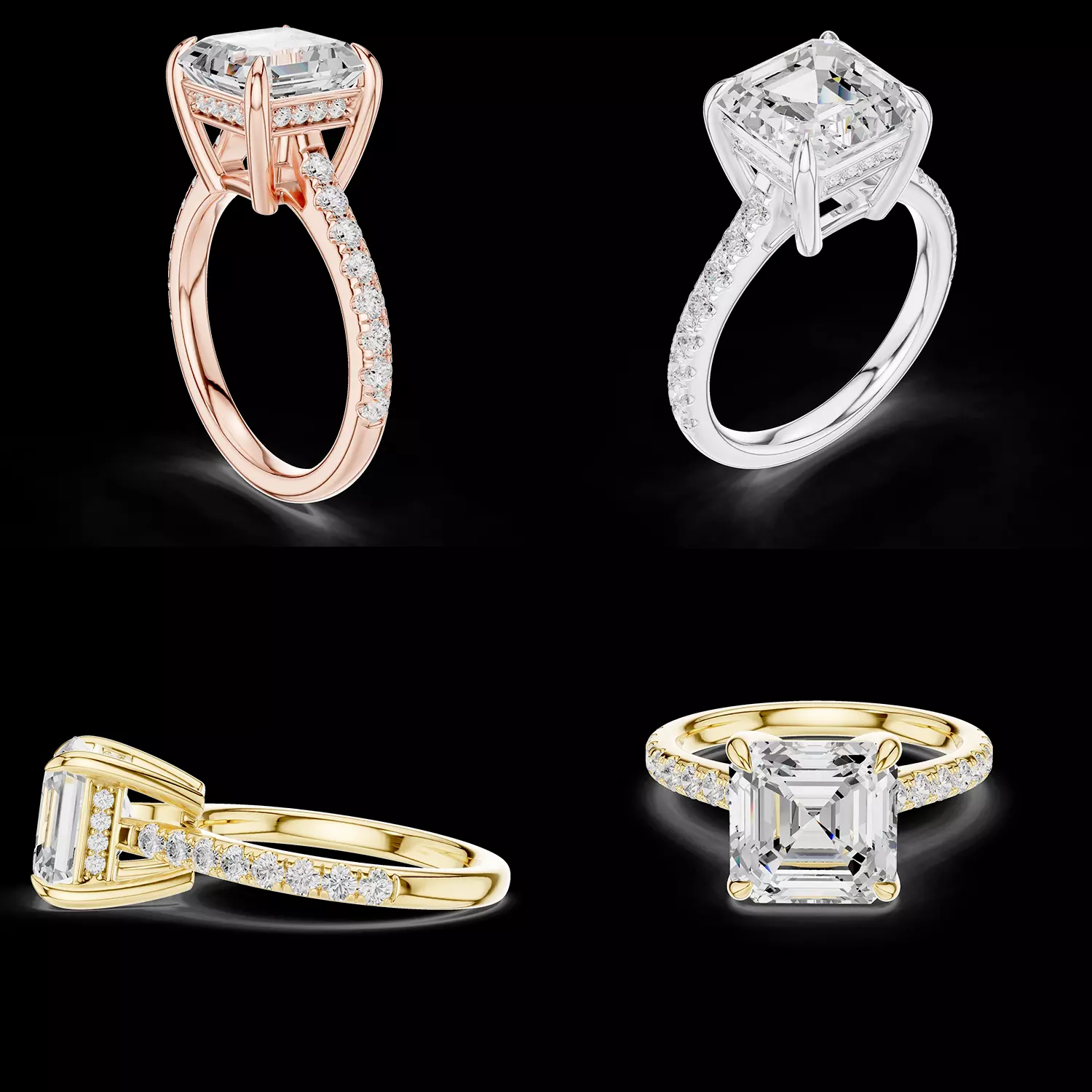Presenting a refined Princess Cut Hidden Halo Engagement Ring CAD model developed for precision jewellery manufacturing and premium bridal collections.