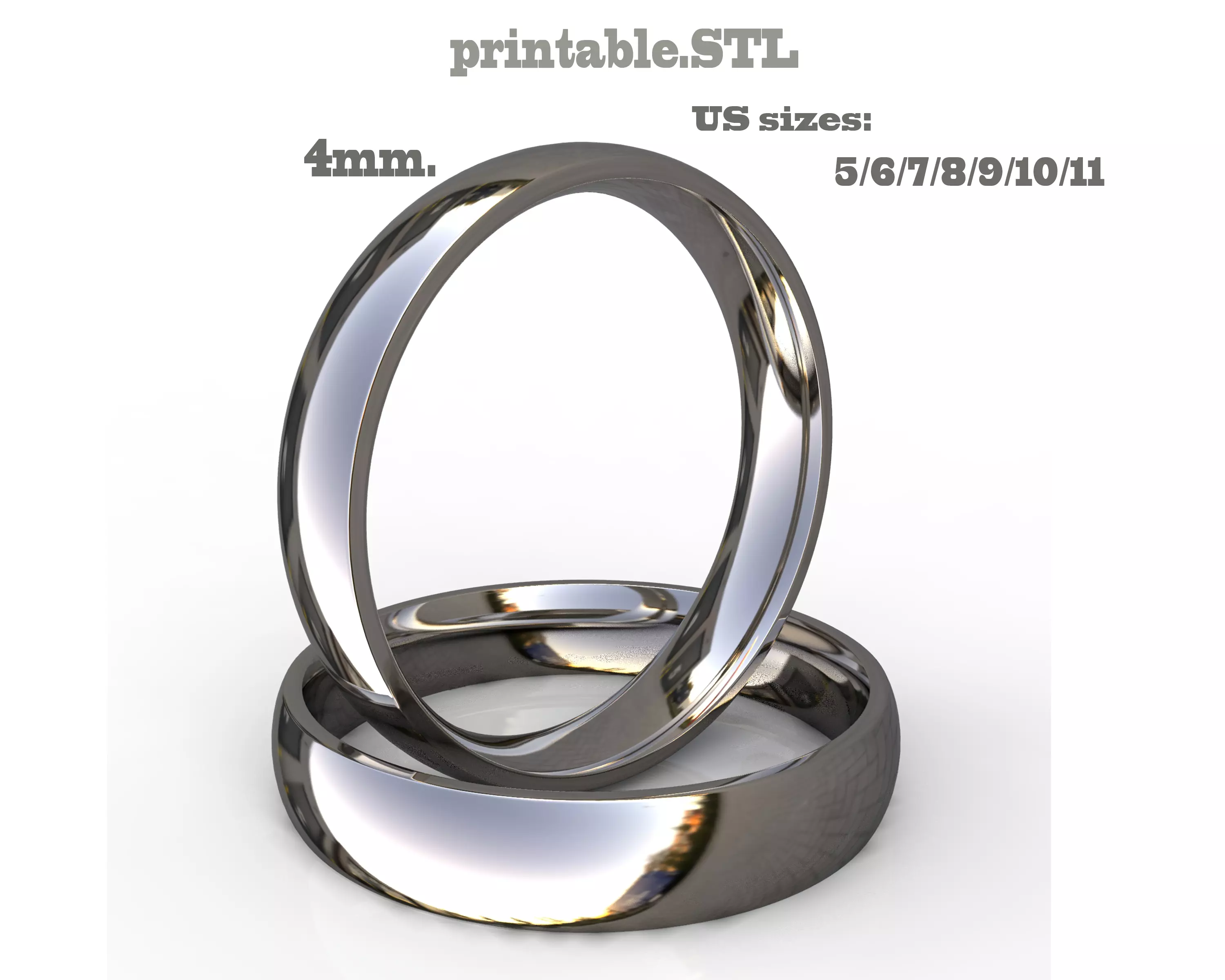 Printable jewelry comfort WEDDING ring STL 7 US sizesUS sizes: 5/6/7/8/9/10/11Width -4mm