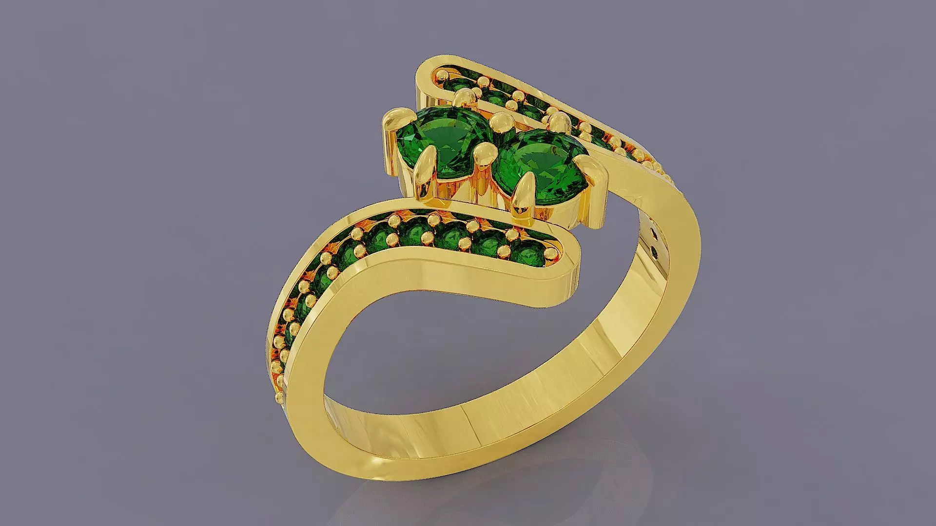 This prong set diamond bypass ring is a symbol of love in motion, with its graceful, intertwining bands and shimmering stones that dance in the light. The sleek gold curves elegantly around the finger, creating a sense of fluidity and harmony. Each prong-set diamond catches the eye with its sparkle, adding a touch of brilliance to the design. It’s a timeless piece that blends romance, craftsmanship, and sophistication into one unforgettable creation. Ring rail size is EU (55) with diameter of 17.5 mm. Final weight of ring extracted from Matrix Gold software for all precious metals is shown in the images. 2 round cut diamonds with diameter of 4 mm and 22 round cut diamonds with diameter of 1.5 mm were utilized in this ring. Dimensions of round cut stones are also exist in pictures. In order to have clearer idea of final product with different materials, several materials such as diamond, emerald, ruby, sapphire, rose gold, white gold, yellow gold were used in pictures rendering process. I invite you to visit other works in my gallery.