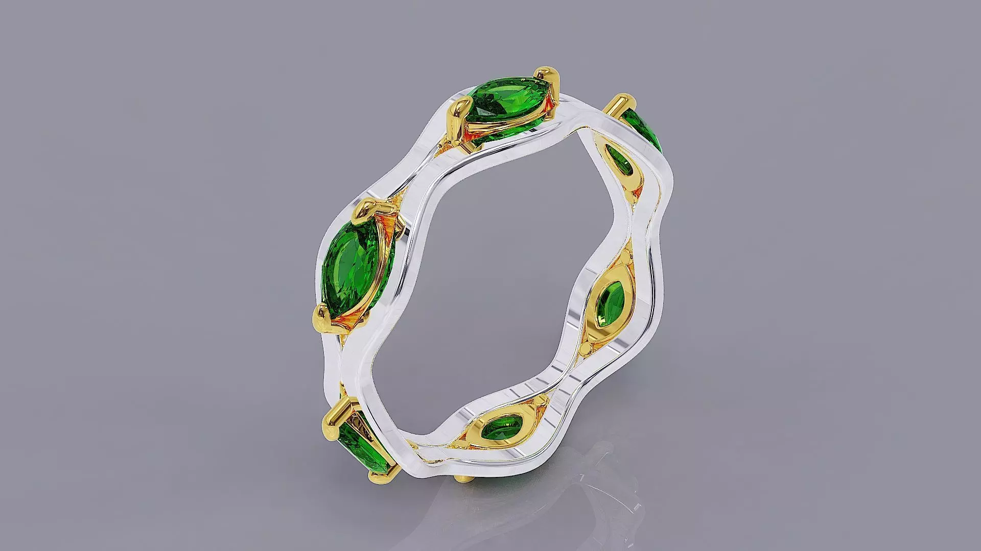 Feel the pulse of poetry in motion—six exquisite marquise gems glide along a sinuous band, each curve shaped like a breath held in anticipation, elegant and alive. This ring doesn’t just rest on your finger—it speaks, with rhythm, grace, and the quiet confidence of something deeply felt. It’s more than design; it’s emotion forged into form, where every line tells a story of passion, balance, and quiet rebellion. Wear it and carry a whisper of artistry that doesn’t shout, but lingers—unforgettable, magnetic, and utterly your own. Ring rail size is EU (55) with diameter of 17.5 mm. Final weight of ring extracted from Matrix Gold software for all precious metals is shown in the images. Dimensions of marquise cut stones are also exist in pictures. To provide a clearer vision of the final piece in various luxurious finishes, the renderings showcase the design with a selection of premium materials, including diamond, emerald, ruby, sapphire, rose gold, white gold, and yellow gold—each highlighting the ring’s elegance in a unique light. I warmly invite you to explore the rest of my gallery—where each piece tells a story, and every design reveals a new chapter of passion, precision, and artistry.