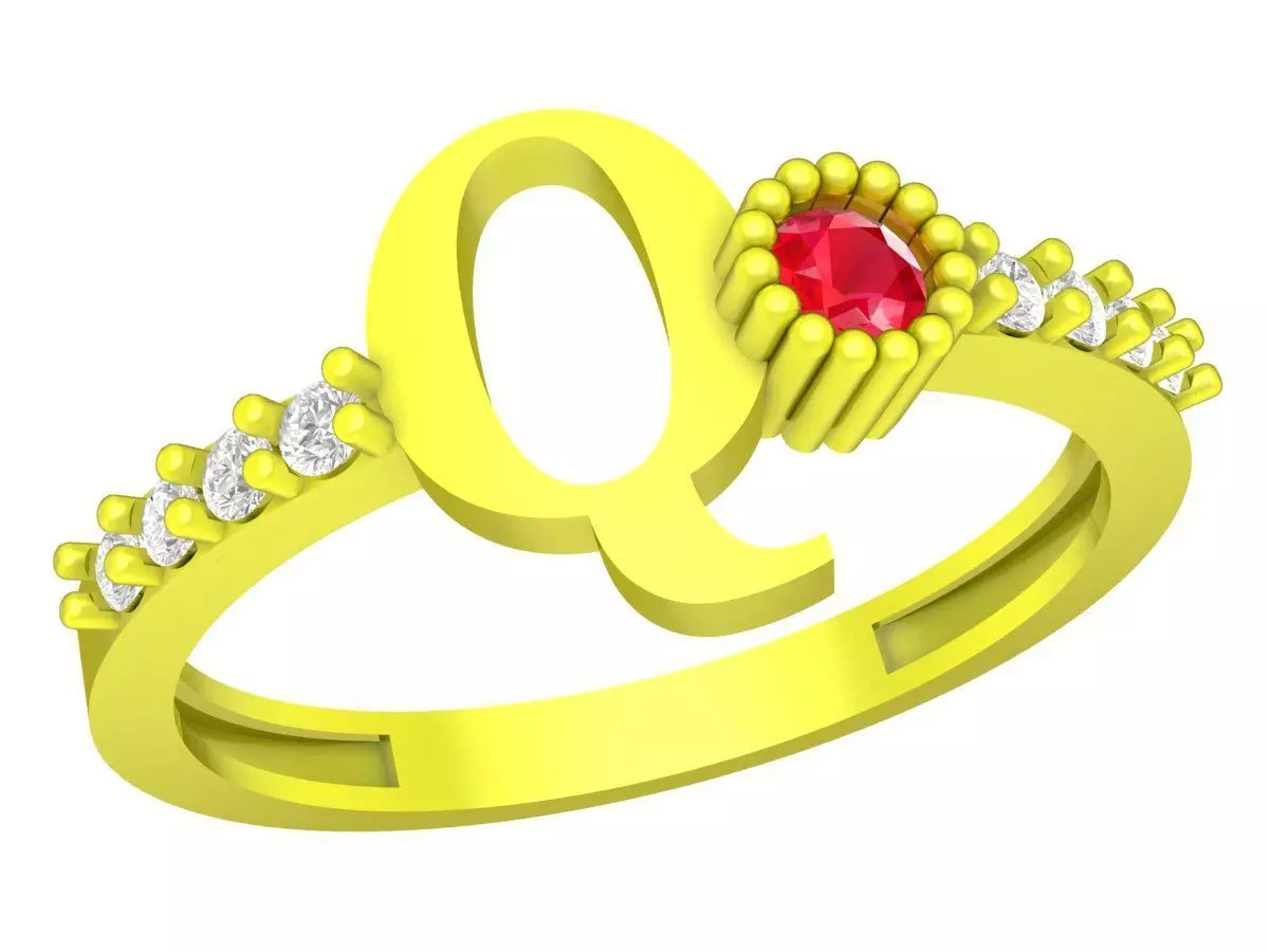 Initial Letter Q Ring with Pave Gemstone Design 4377 3D print model