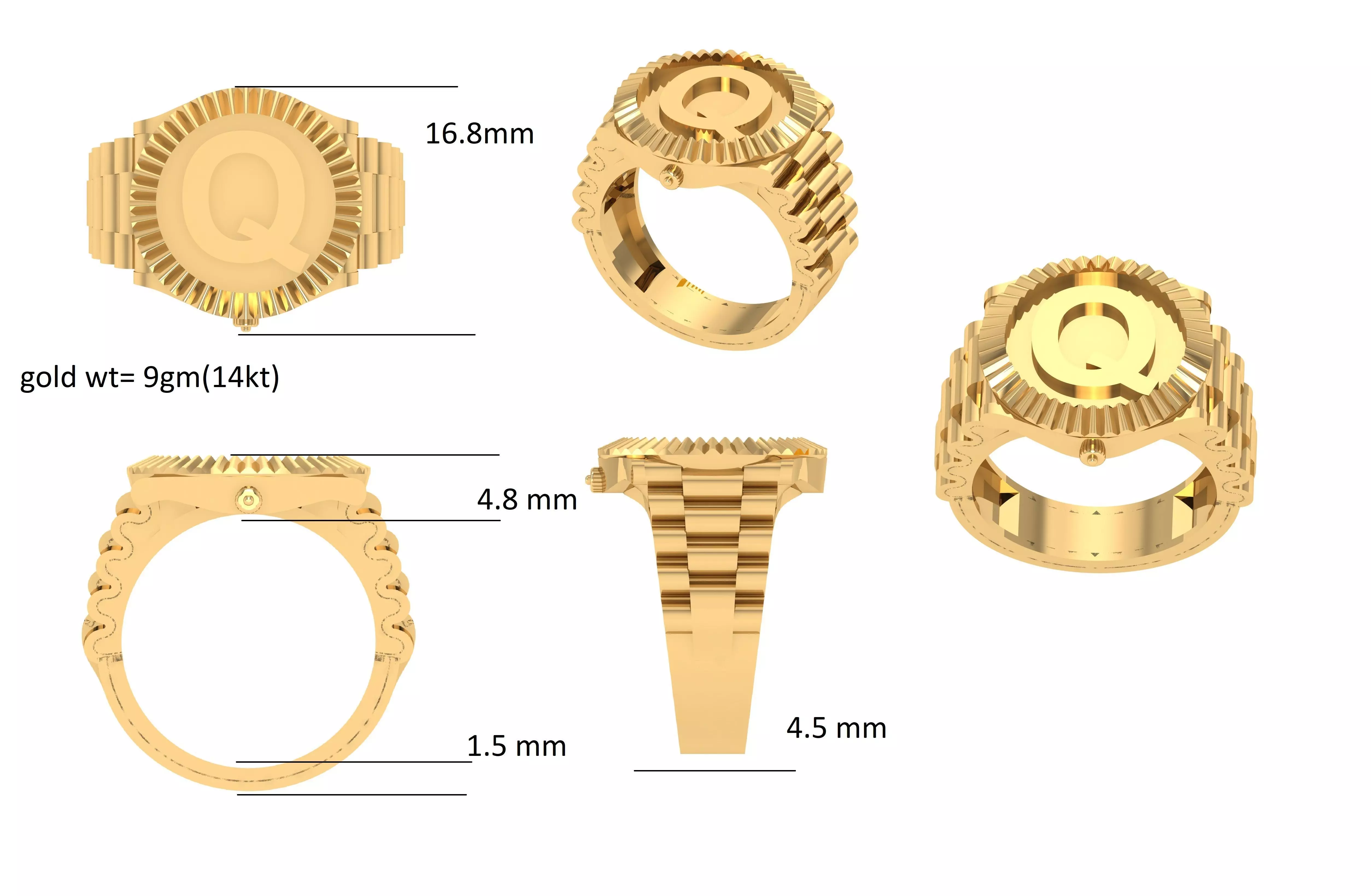 Q Letter Glossy ring 3D model 3D print model