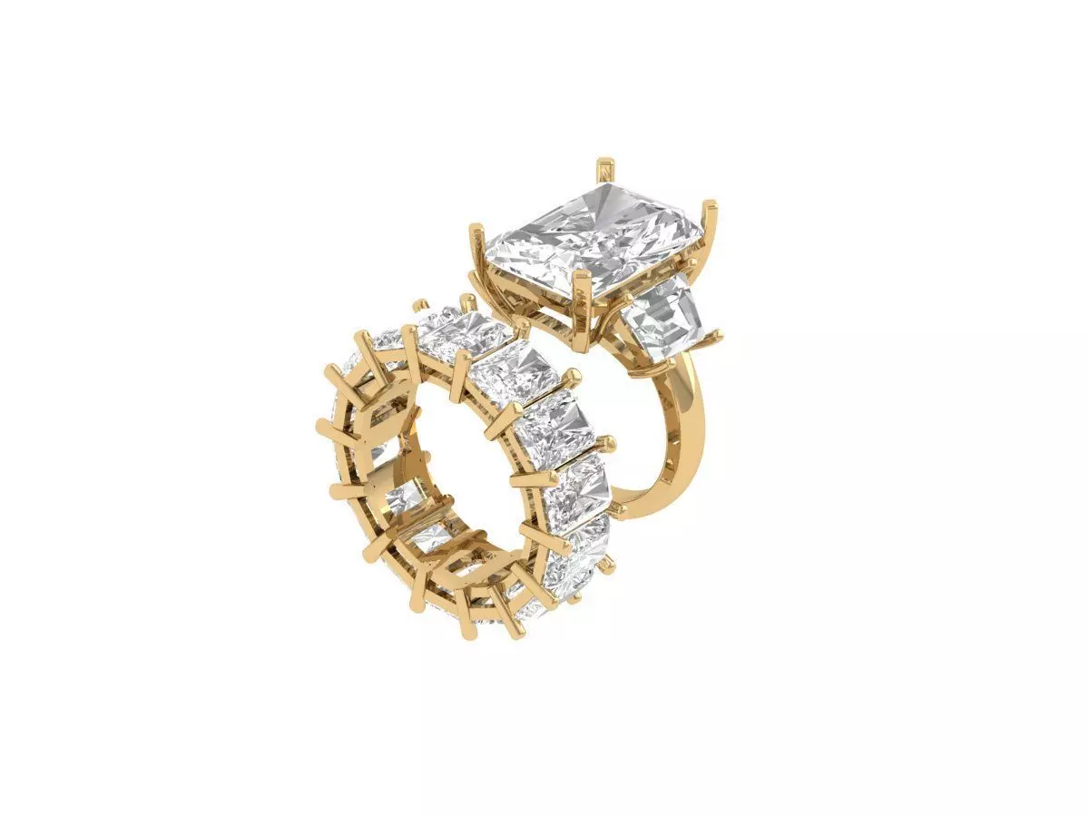 Radiant 3 Stone Bridal set 3D print model