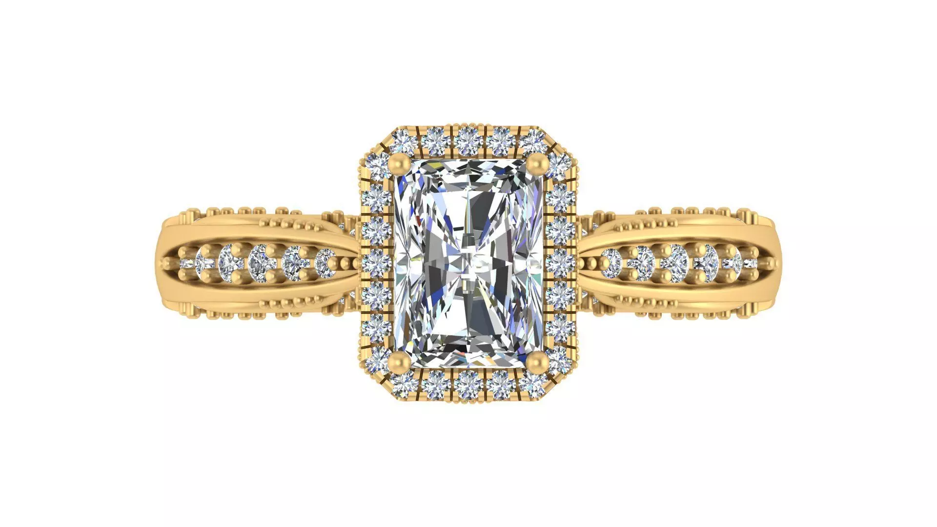 Design Features:Radiant-Cut Center Stone: The rectangular shape with cropped corners enhances brilliance and offers a modern, elegant look.