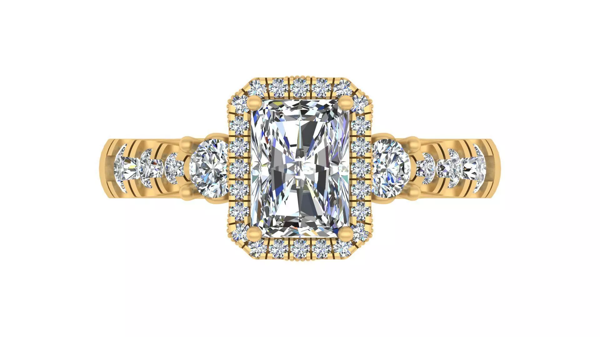 - Center Stone: Radiant-cut blue gemstone (7.00 x 5.50 mm)