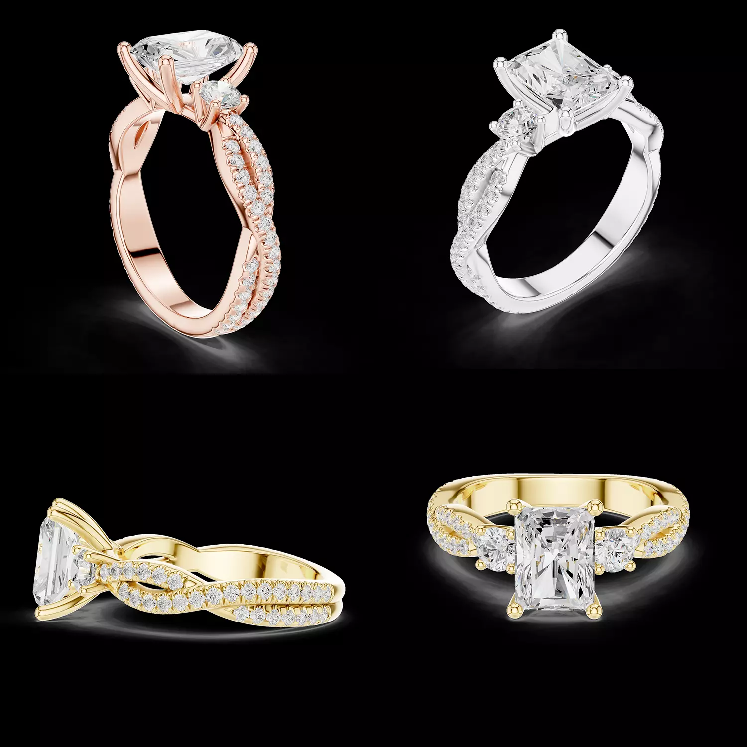 The elegant twisted shank design adds a modern and luxurious touch, making this ring perfect for engagement, bridal collections, and custom jewelry projects. The model is carefully crafted with precise stone seats, accurate prong placement, and balanced proportions to ensure smooth casting and stone setting in real production.