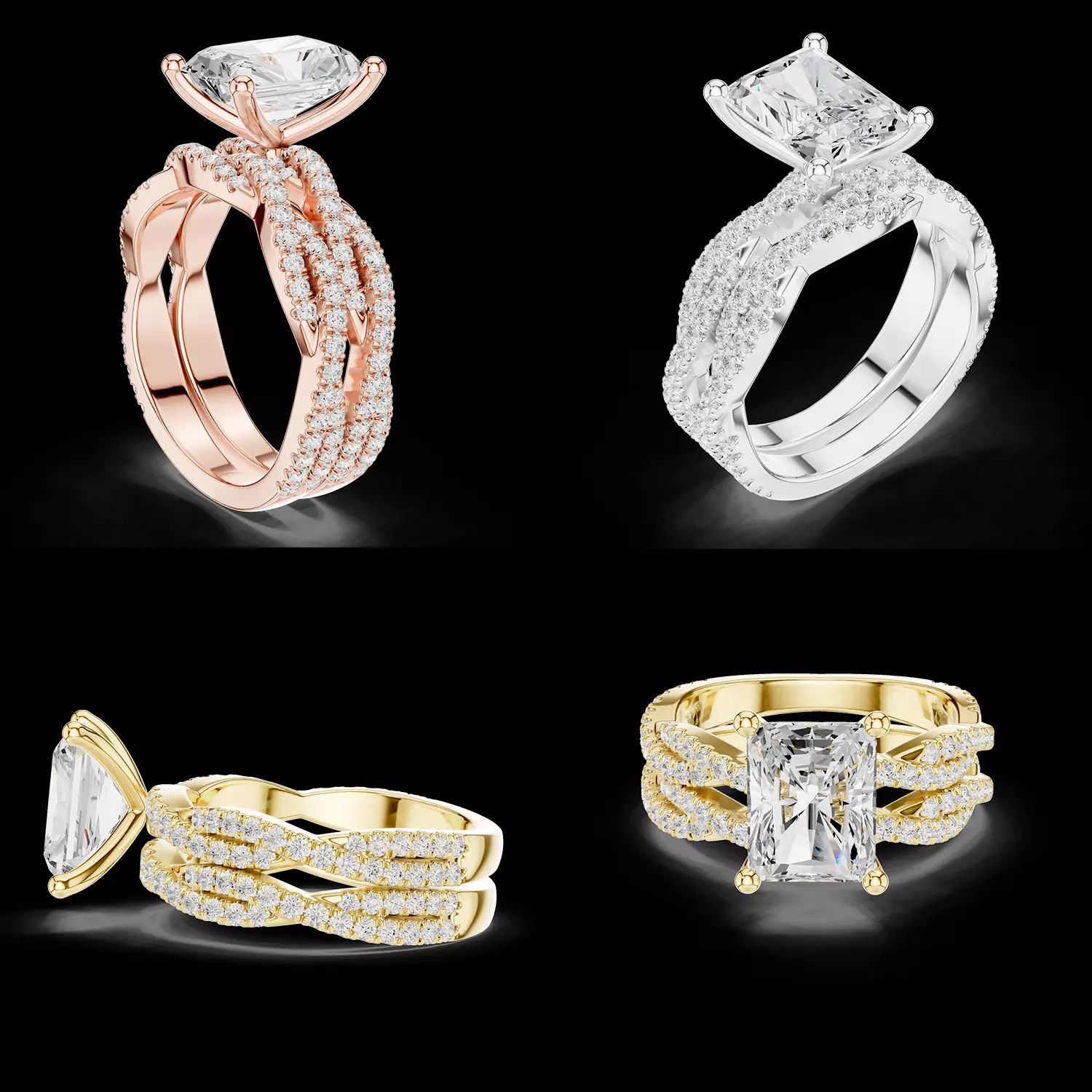 Important Points• Production-ready jewelry CAD model• Multi-row intertwined diamond band design• Accurate prong and stone seating• Casting-friendly construction• Suitable for resizing and customization• Ideal for rendering and presentation