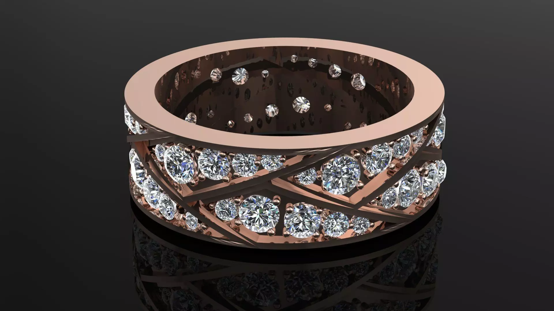 Ring rose gold with diamonds 3D print model