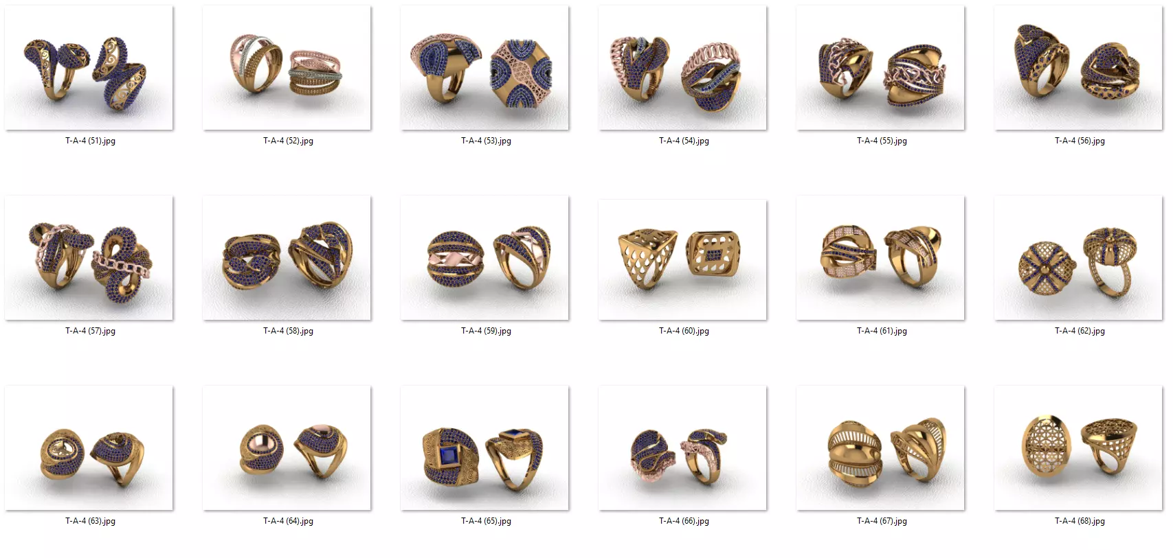 ring 50 pieces drawing 3d rihone drawing ring rings ring 3D print model