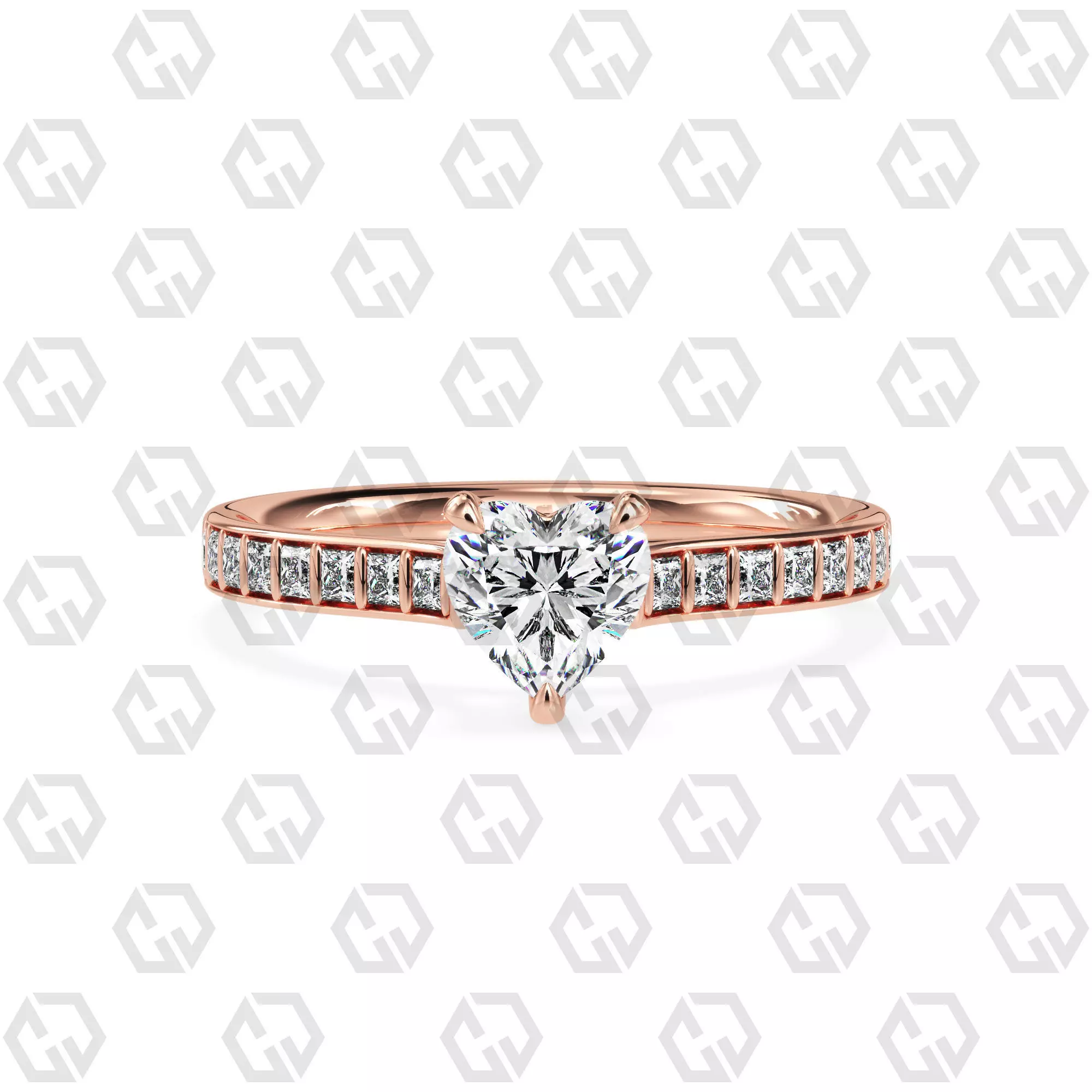 Ring 74 Heart Shape and princess on shanks with Gems 3D print model