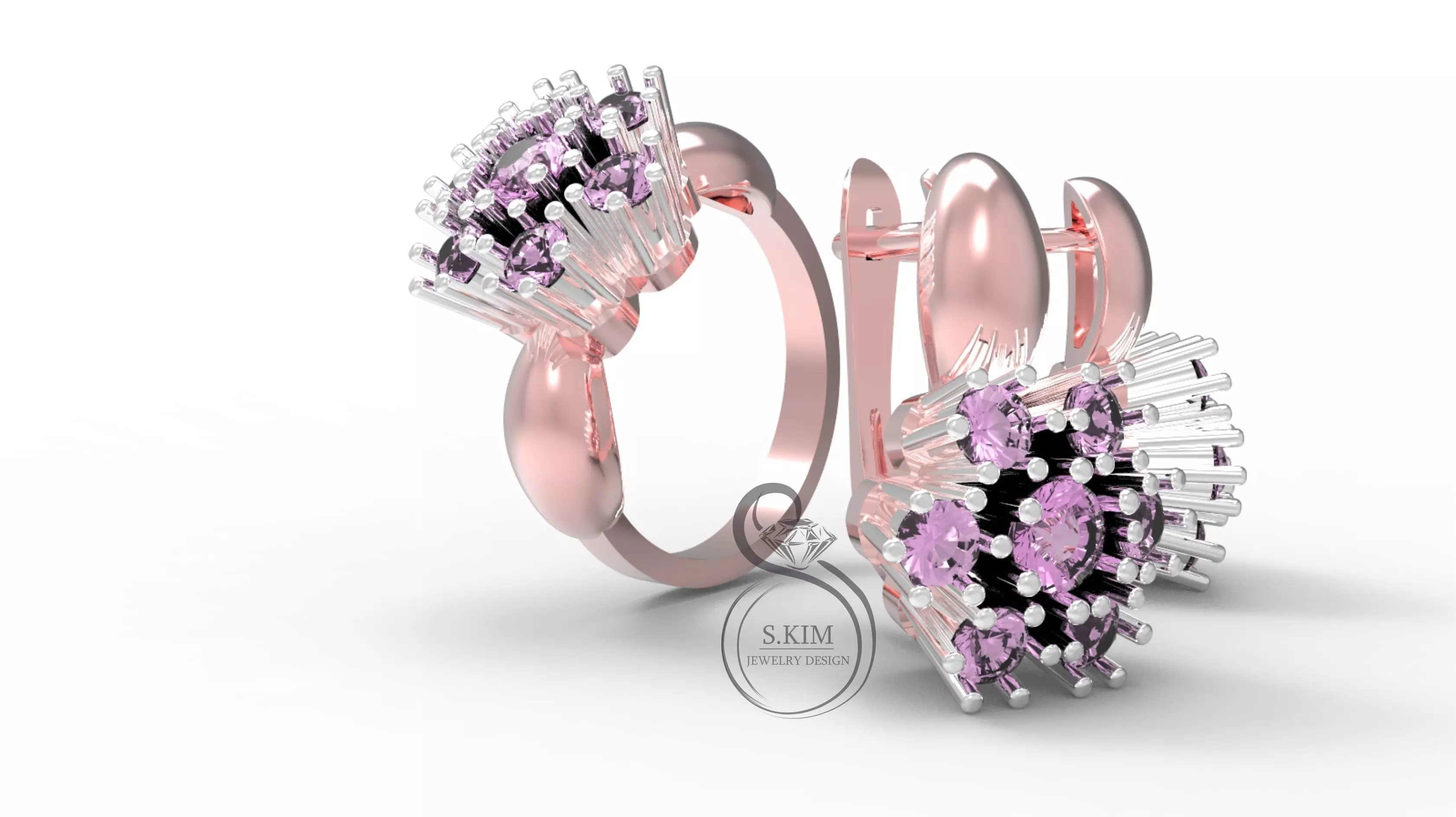 Ring sizes: inner diameter mm : 17 | 17.5 | 18 | 18.5 | 19 | 19.5 Size USA: 6.5 | 7.25 | 7.75 | 8.5 | 9 | 9.5Gems size 4mm centre and 3mm aroundRecommended material - silver or gold! Approximate metal weight (for ring size 18 mm): gold 14k – 8.2 grams; gold 18k – 9.7 grams; silver 925 Sterling – 6.7 grams. Model volume (for ring size 18 mm): 634.6 cubic mm. Approximate metal weight (for 2 earrings): gold 14k – 12.7 grams; gold 18k – 15 grams; silver 925 Sterling – 10.2 grams. Model volume (for 2 earrings): 982.2 cubic mm. Model avalible in STL format for prototyping. Geometry is healed, and fixed all the bad with RP Magics software You can check out my other products by clicking on the author name s.kim_jewelry_design. Any questions? Please contact me. instagram @s.kim_jewelry_design email: skimjewelrydesign@gmail.comfacebook s.kim_jewelry_design youtube SKIM Jewelry Design