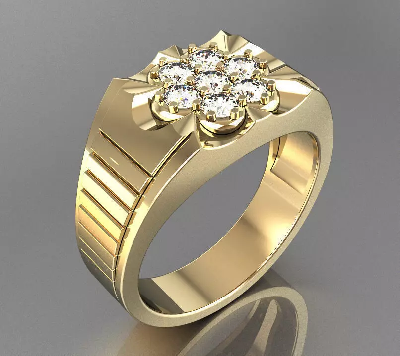 Ring size : 21 mm (US 11.5)Gems: 7 - 3mmModel is ready for prototyping on CNC and 3D printing.