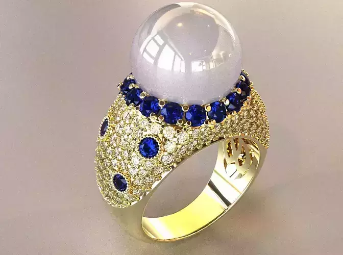 Ring - Pearl & Diamonds - 3D model ready for 3D printing