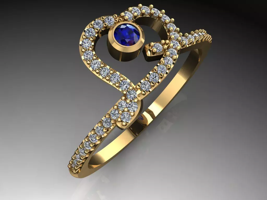 Ring Shining Big Heart. Size USA: 7Ring size inner diameter : 17,33 mm,Recommended material - silver or gold (white or yelow or pink) Metal weight(size 7) : gold 14k – 2,0 grams; gold 18k – 2,4 grams. The ring has gems: 2,5mm-1 piece,gem weight-0,06ct.,1,0mm-43 pieces,gems weight-0,16ct.
