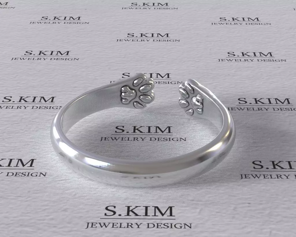 Ring with cat paws and footprints 3D print model