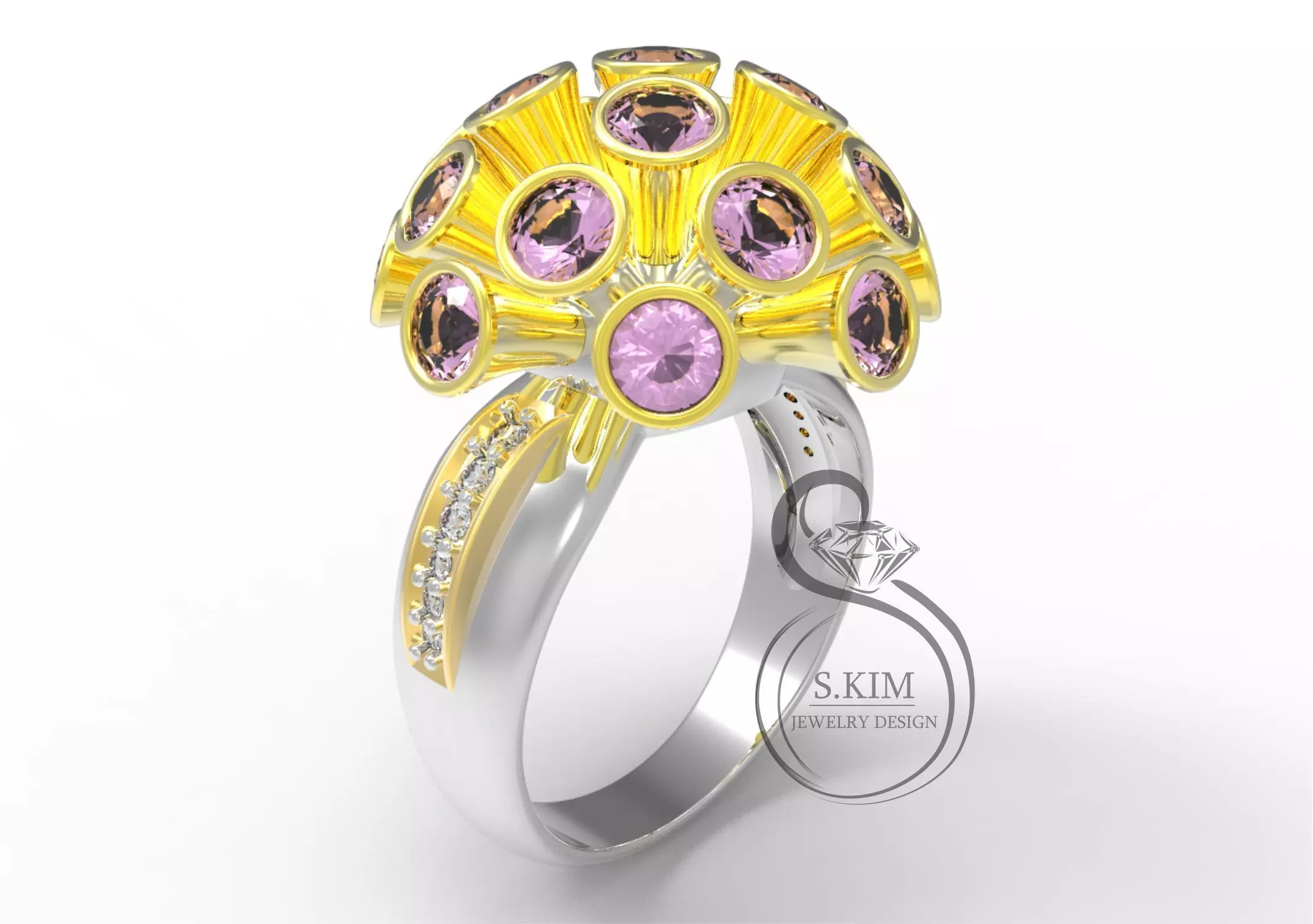 Model is ready for 3D Printing and prototyping on CNC. Geometry is healed, and fixed all the bad with RP Magics software Ring sizes: inner diameter mm : 17 | 17.5 | 18 | 18.5 | 19 | 19.5 Size USA: 6.5 | 7.25 | 7.75 | 8.5 | 9 | 9.5Gems size on pictureApproximate metal weight (for ring size 18 mm): gold 14k – 11.83 grams; gold 18k – 14.22 grams; silver 925 Sterling – 9.65 grams.