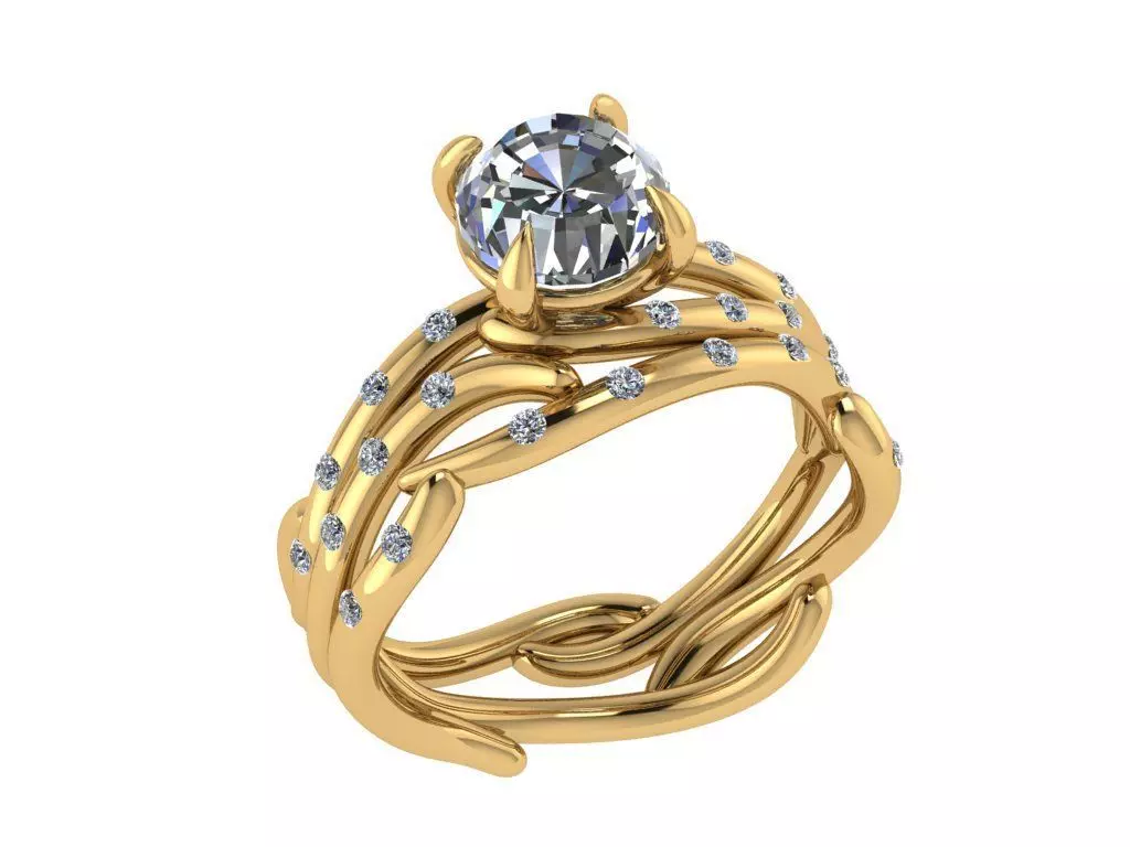 Ring435 gold engagement ring with diamonds 3D print model