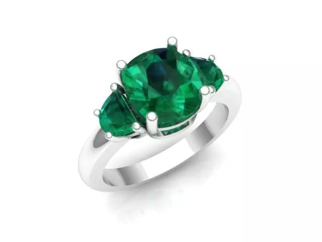 Rings emerald stone three stone ring 3D print model