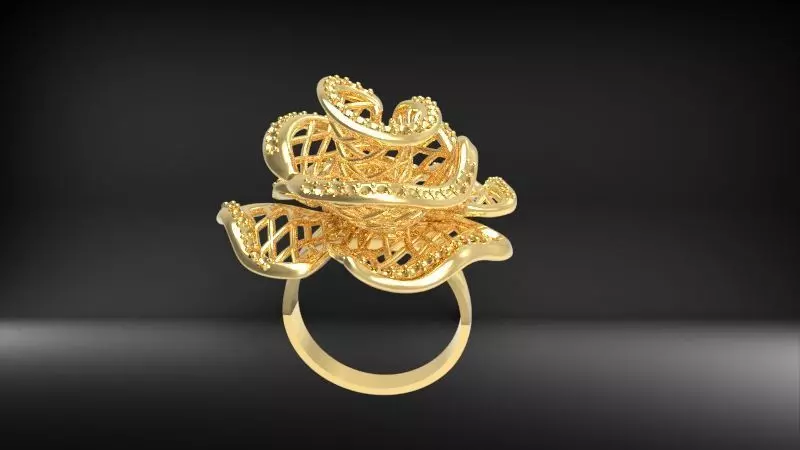 Enchanted Rose Ring - Rose shaped Diamond Engagement Ring Rose Gold, Natural or Moissanite, Romantic Flower Engagement ring,Enchanted Rose ring in two version, with and without gems / diamonds/ moissanite / birthstones.Ring diameter 18.16mm - USA RING SIZE 8Gems SIZE: 1.2mm