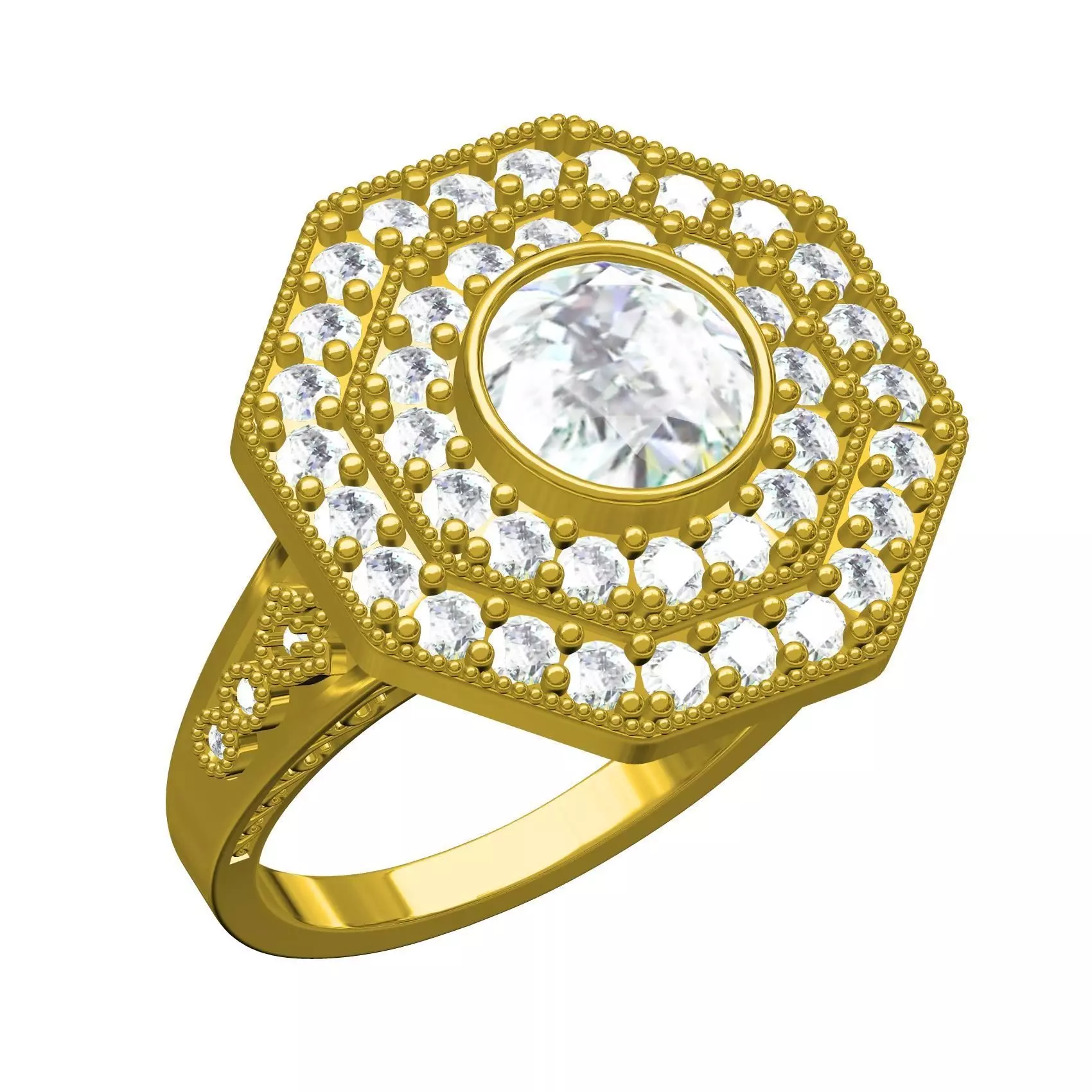 Round Bezel Octagon Double Halo Engagement Ring