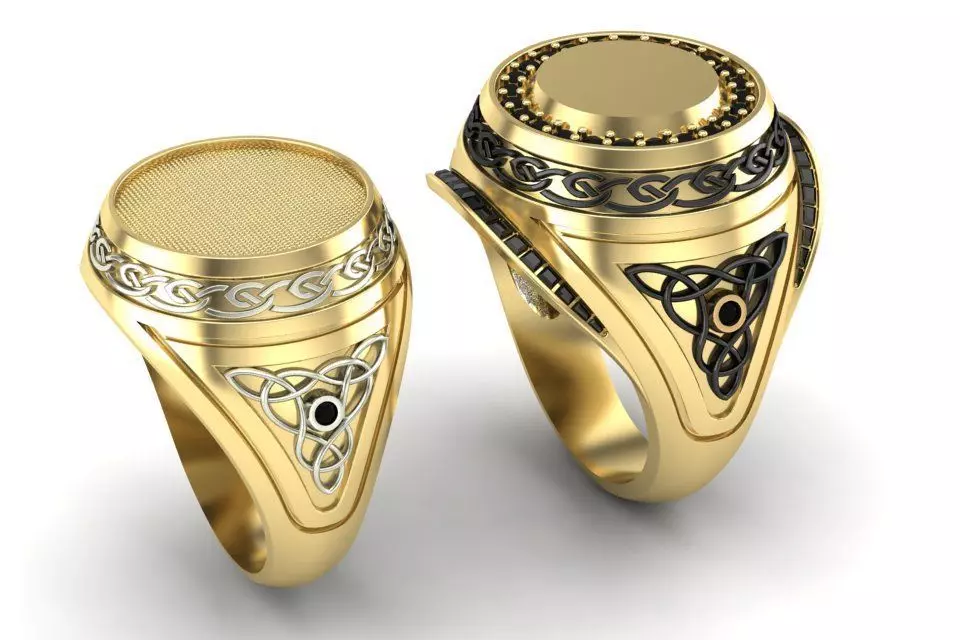 Round Celtic Signet mens ring. american size 11 and 9 (diameter 20.5mm and 19) . 14k gold weith 15.2 and 8.9gr. gems 1.5mm-26pc. Therefore there are 2 versions of the model. You can see the dimensions of the model on one of the photos presented here. There 3dm file for editing and stl for printing.90% of my 3d models have been checked: made wax and finished product in gold or silver .All parts separately - you can change as you need.Model are for 3D printer or cnc machine. Ready for the print. Made in programs Matrix and Zbrush .High polygonal model.