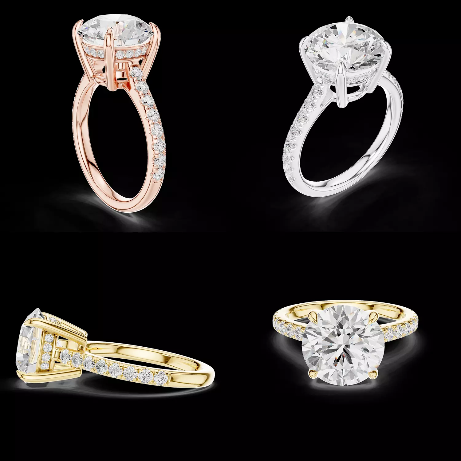 Introducing a refined Round Cut Hidden Halo Engagement Ring CAD model crafted for high-end jewellery production and bridal collections.