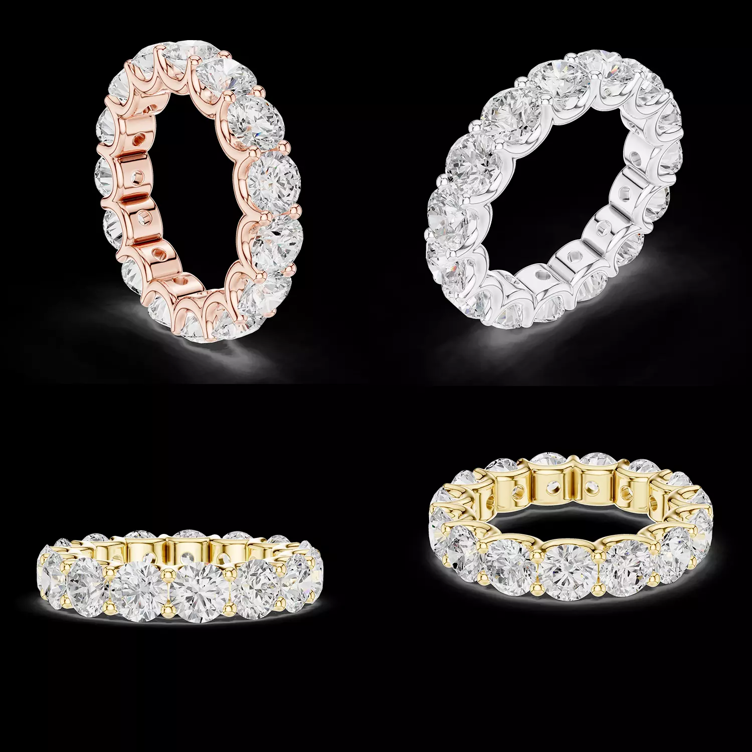 This Round Diamond High Profile Eternity Band 3D Model is a professionally engineered jewelry CAD design created for premium manufacturing and luxury bridal collections. The ring features a continuous circle of large round brilliant diamonds secured in a refined prong setting with a slightly elevated profile for enhanced brilliance and visual depth.