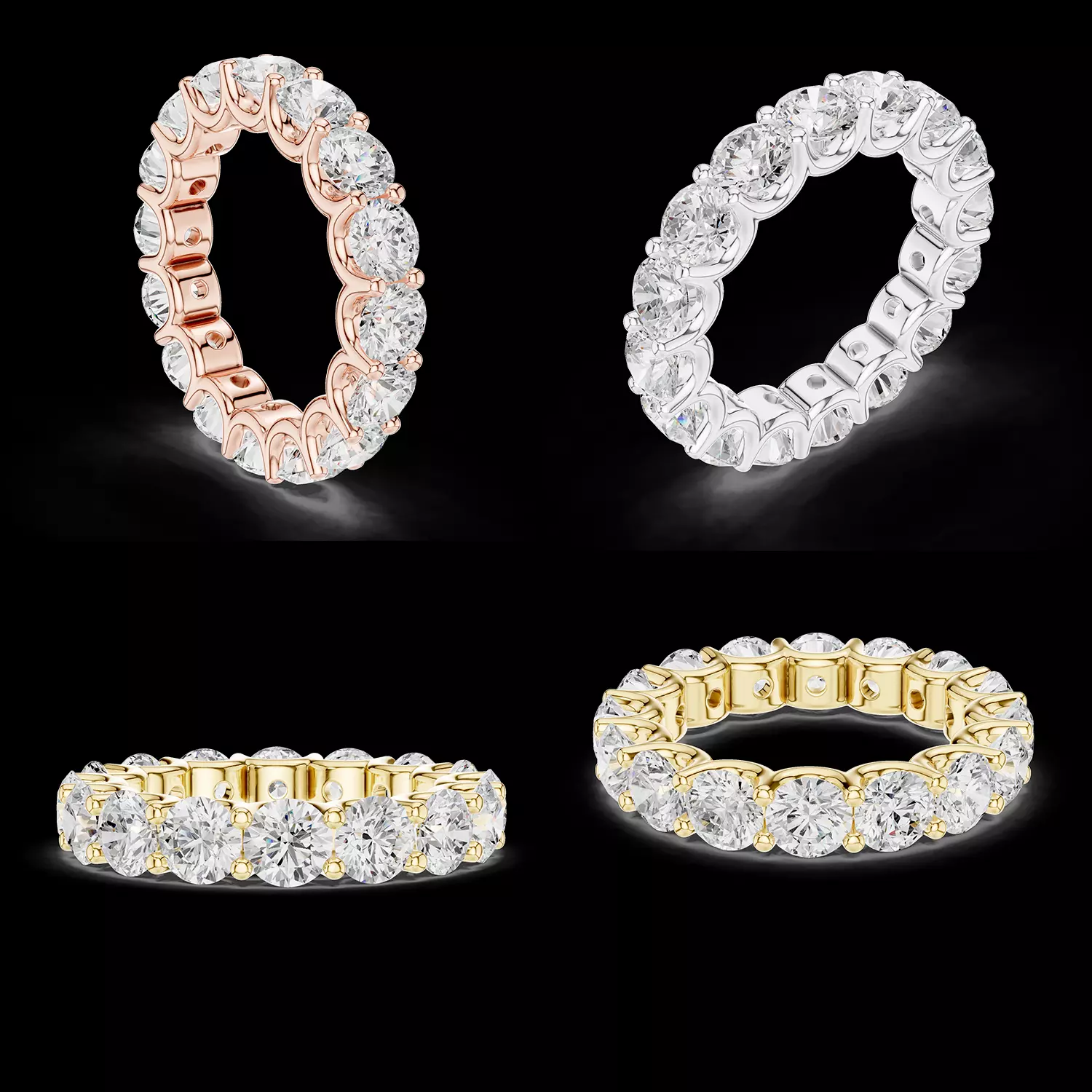This Round Diamond Premium Eternity Band 3D Model is a high-end jewelry CAD design created for luxury manufacturing and professional stone setting. The ring features a full circle of large round brilliant diamonds secured in a precisely engineered prong setting, delivering exceptional brilliance and bold visual impact.