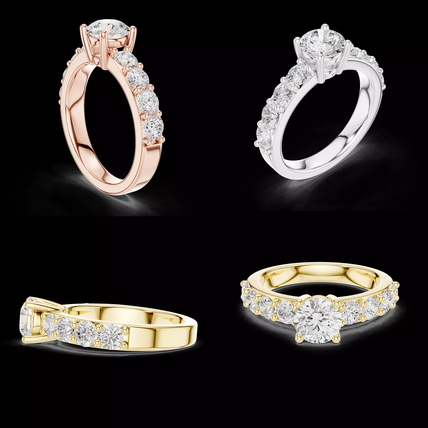 This Round Diamond Prong Set Engagement Ring 3D Model is a refined and production-ready jewelry CAD design created for professional manufacturing and high-end rendering. The ring features a classic round brilliant center stone secured in a strong four-prong setting, elevated for enhanced light performance and maximum brilliance.