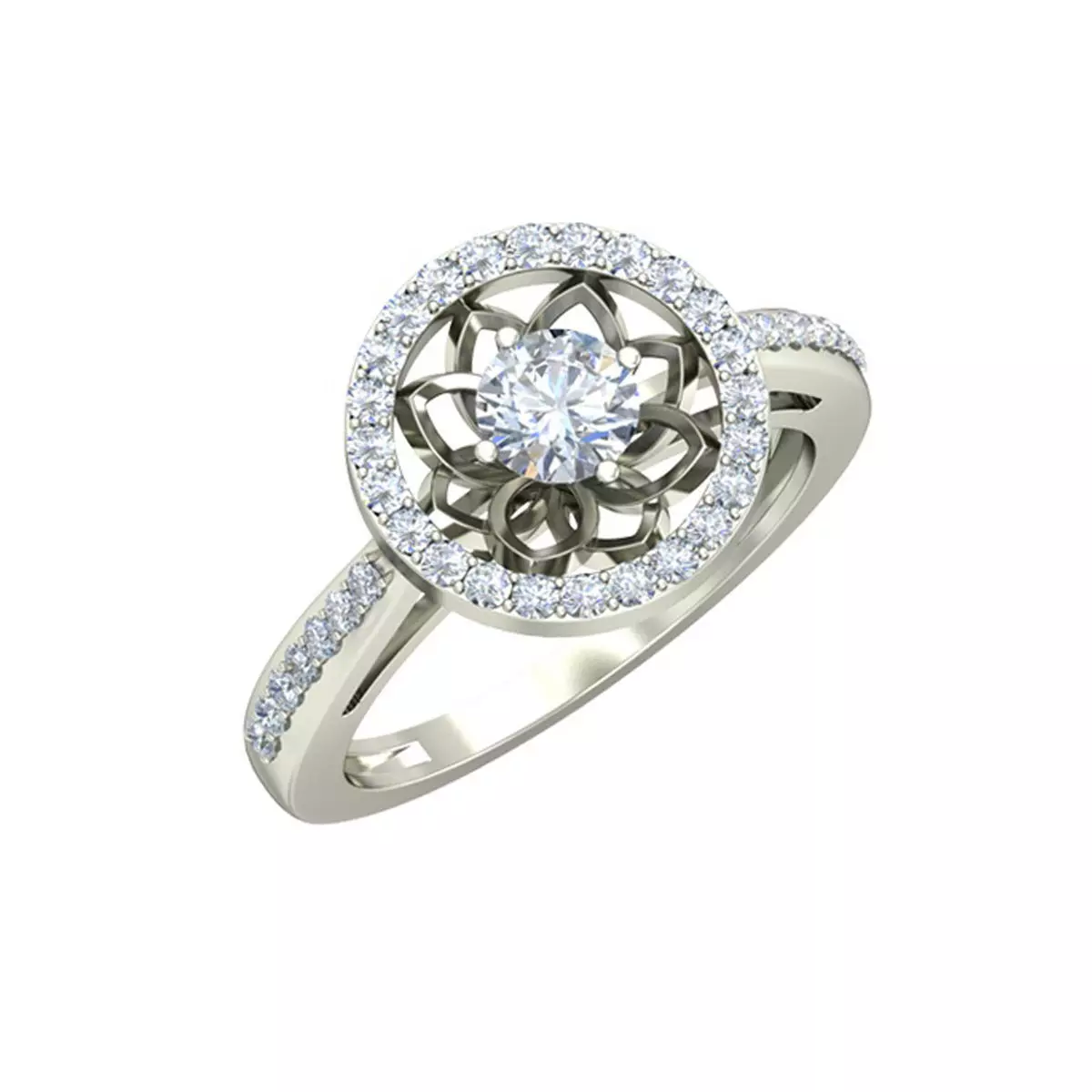 Round Shaped Side Stone Ring With Diamonds 3D print model