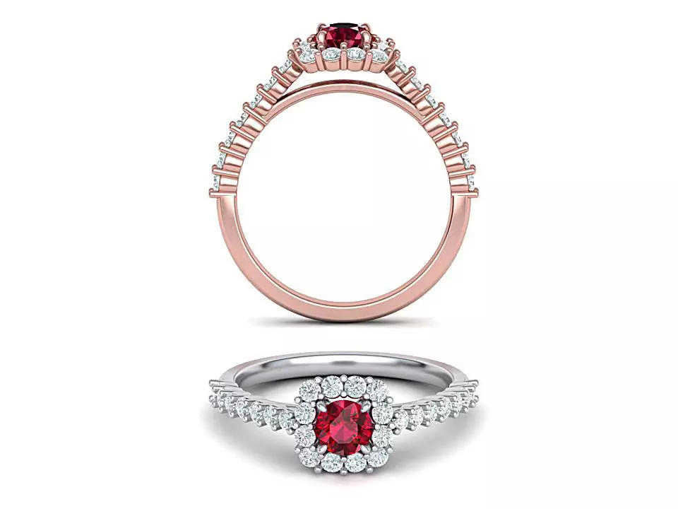 • Ruby Engagement ring Halo design printable 3d model with centr Round cut stone 4.4mm (0.32ct)